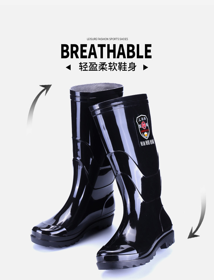 상하이 브랜드 노동 보호용 레인슈즈, 건설 현장 방수 레인부츠, 남성용 미끄럼 방지 내마모성 고무신, 두꺼운 워터슈즈 도매 및 배송
