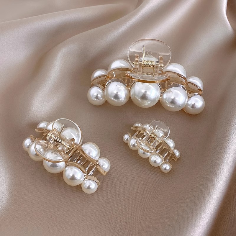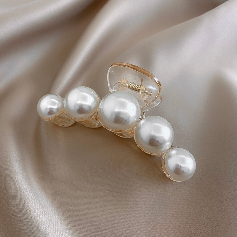 여성용 우아한 대형 진주 머리핀, 뒷머리 클립, 인터넷 연예인 상어 클립, 고급 클립, 머리 장식, 원라인 클립 헤어 액세서리