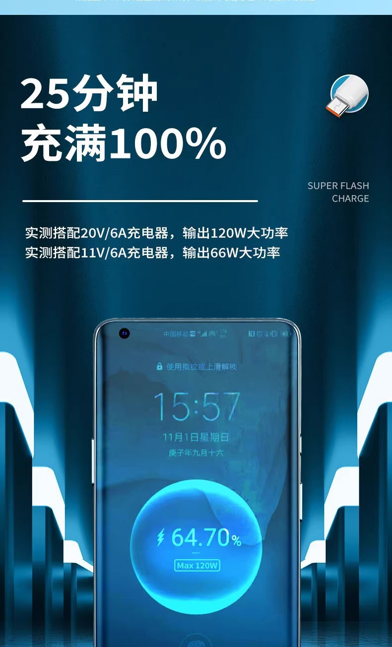PD120W 두꺼운 Shenlong 케이블 Huawei 충전 케이블 120W Python 케이블 Honor Xiaomi 플래시 충전에 적합한 초고속 충전