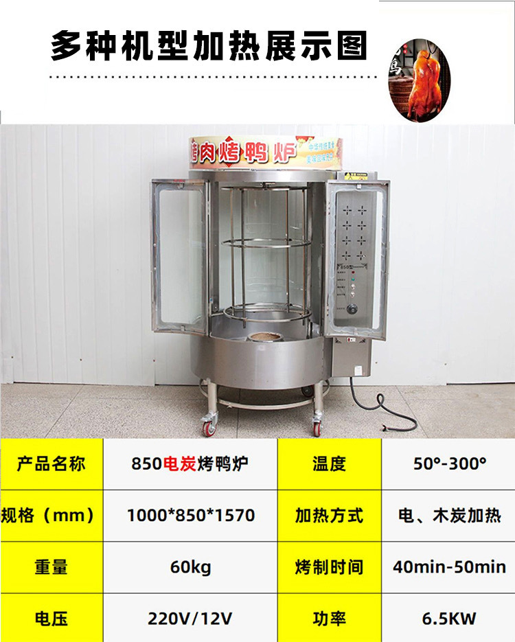 완전 자동 바삭한 상업용 오리 구이 오븐 850 모델 680 모델 숯불 오리 구이 생선 회전식 전기 이중 용도 오븐