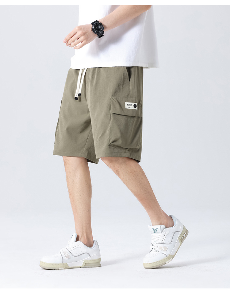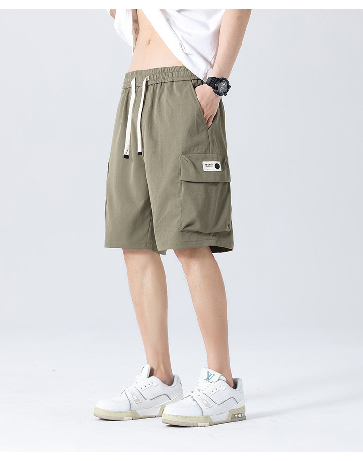 아메리칸 스타일 아이스 실크 대형 포켓 크록 바지 남자 2025 새로운 느슨한 플러스 사이즈 여름 얇은 캐주얼 바지스토어 가기