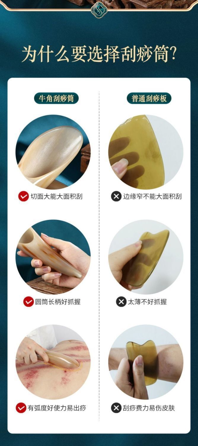 천연 뿔 긁는 튜브 긁기 보드 뷰티 살롱 마사지 스틱 페이셜 백 자오선 지목 다목적 대형 사이즈