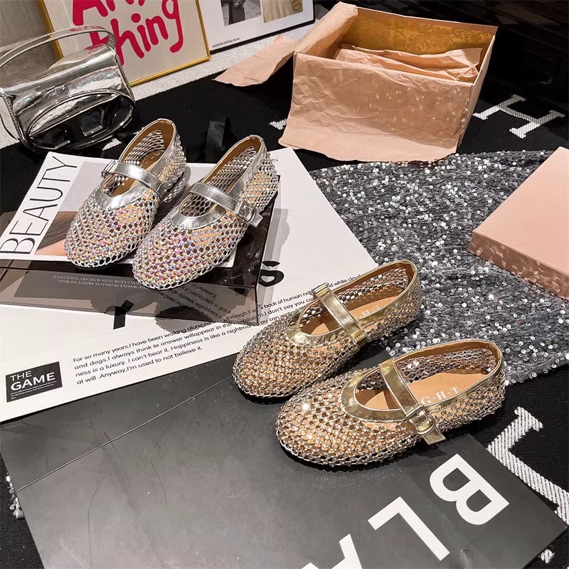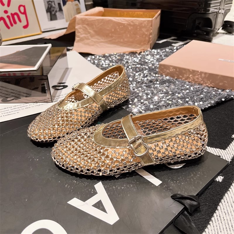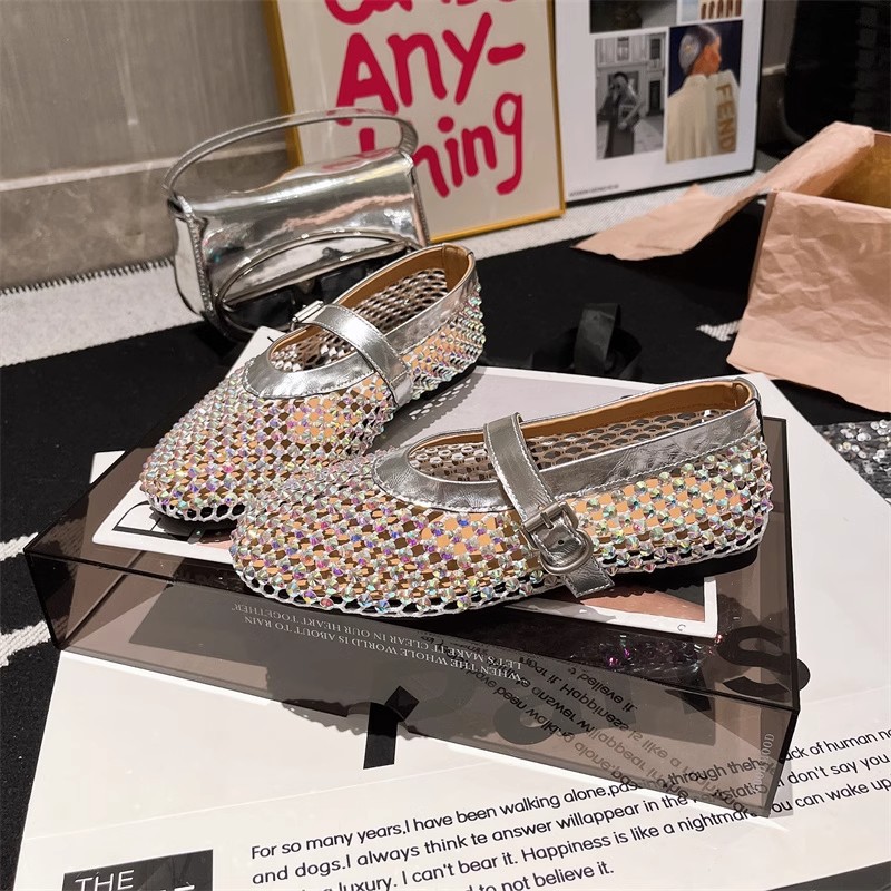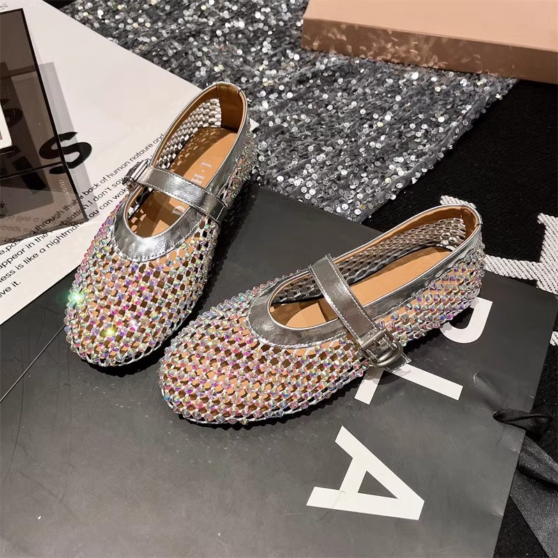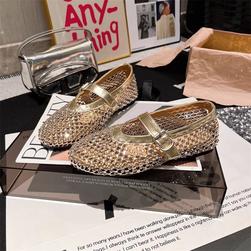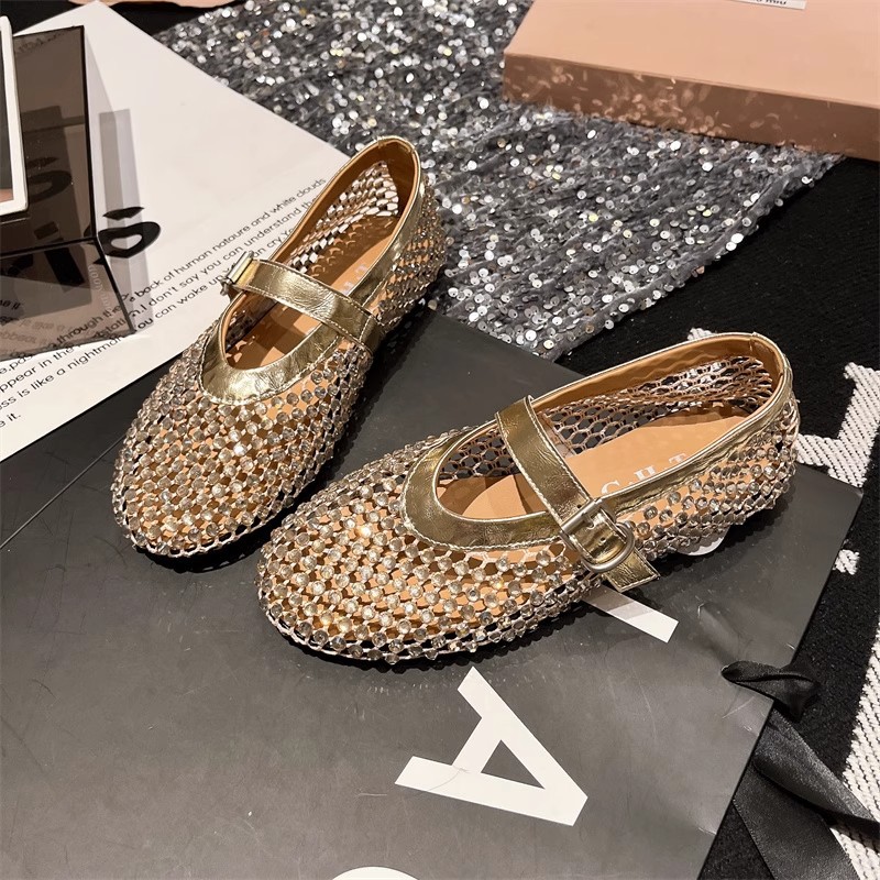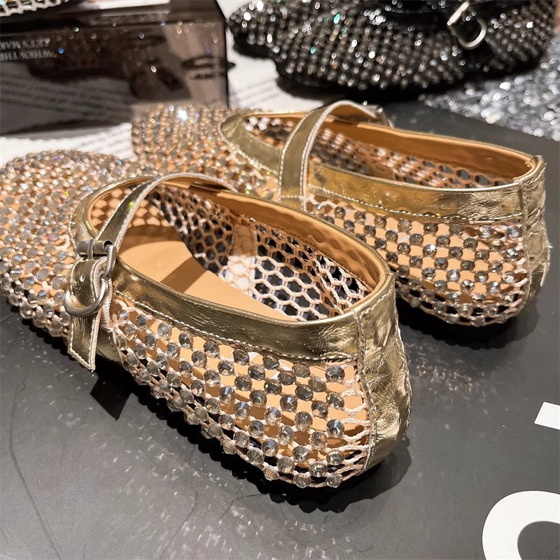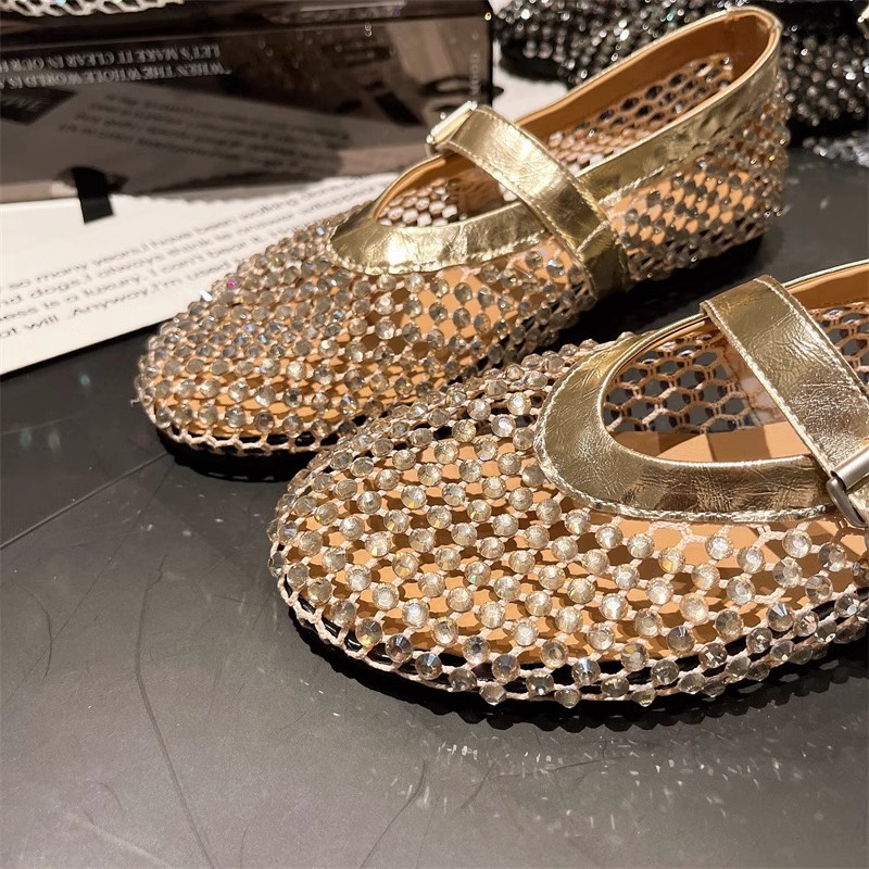 라인스톤 원라인 메리제인 중공 메쉬 높이 4CM 발레 슈즈 망사 슈즈 여성용 로퍼