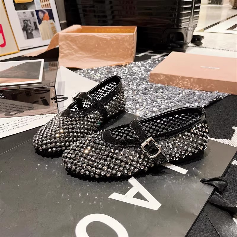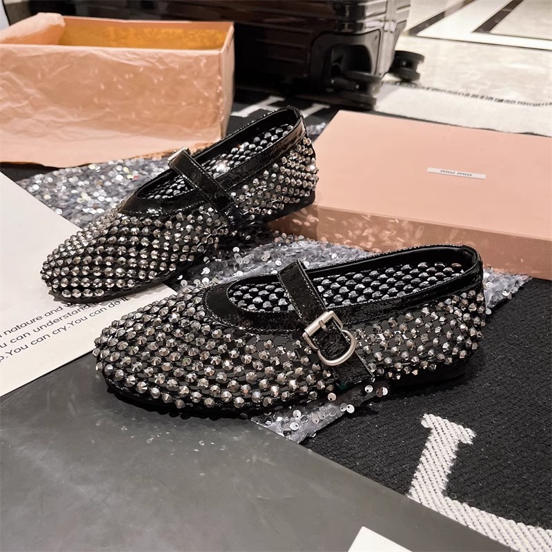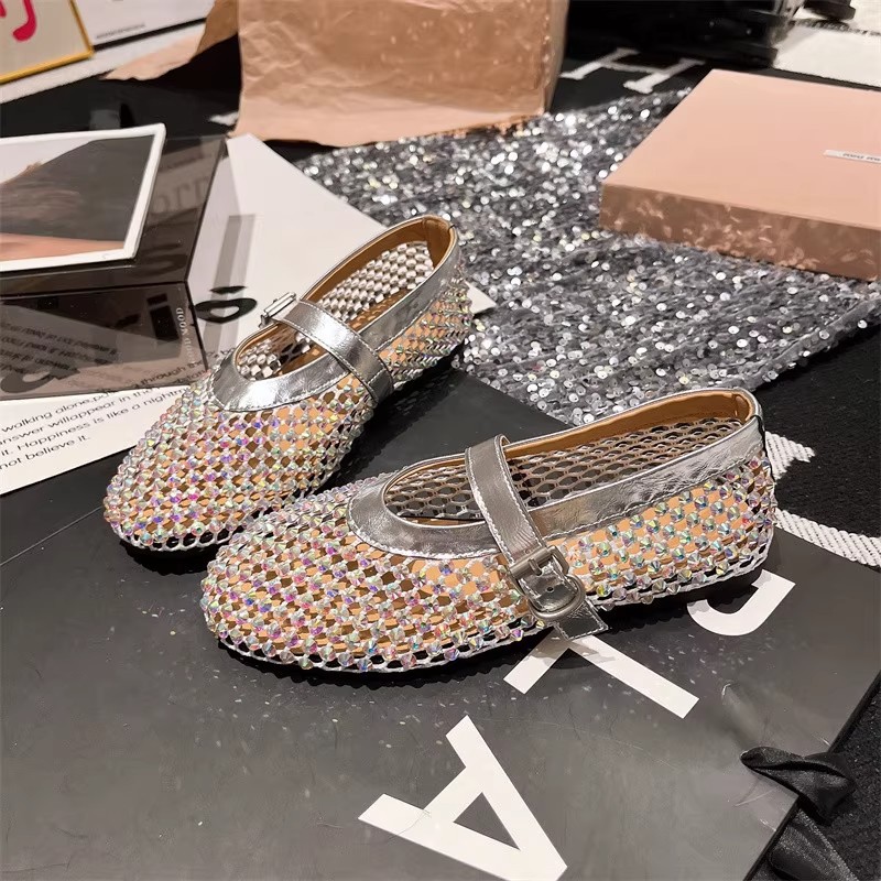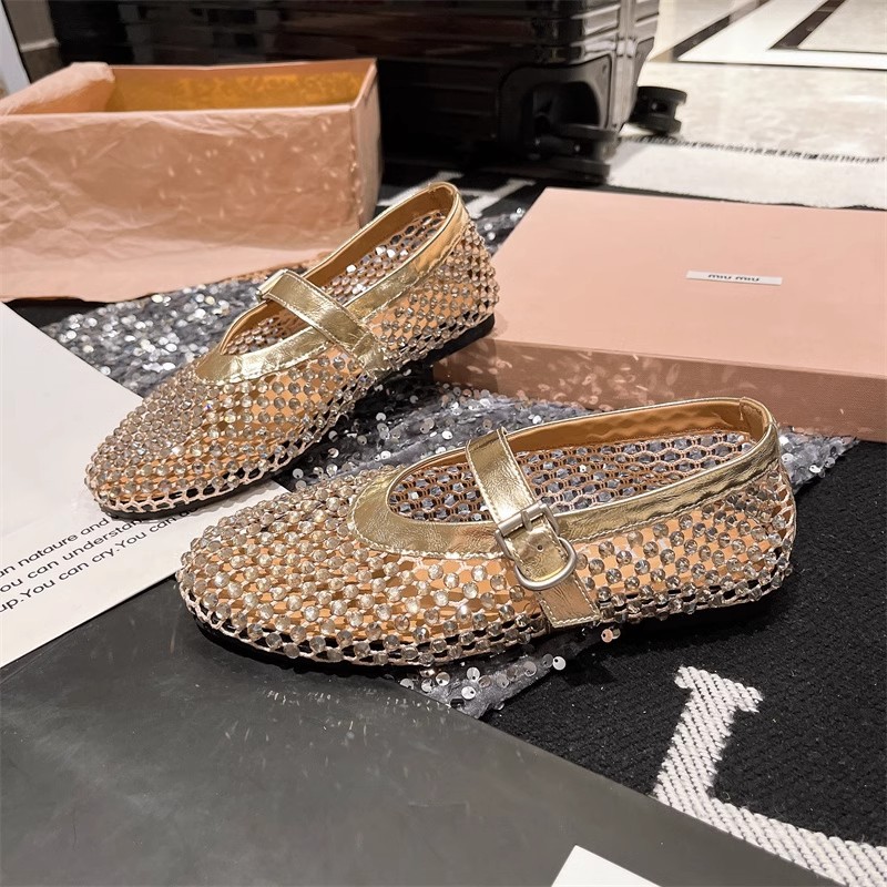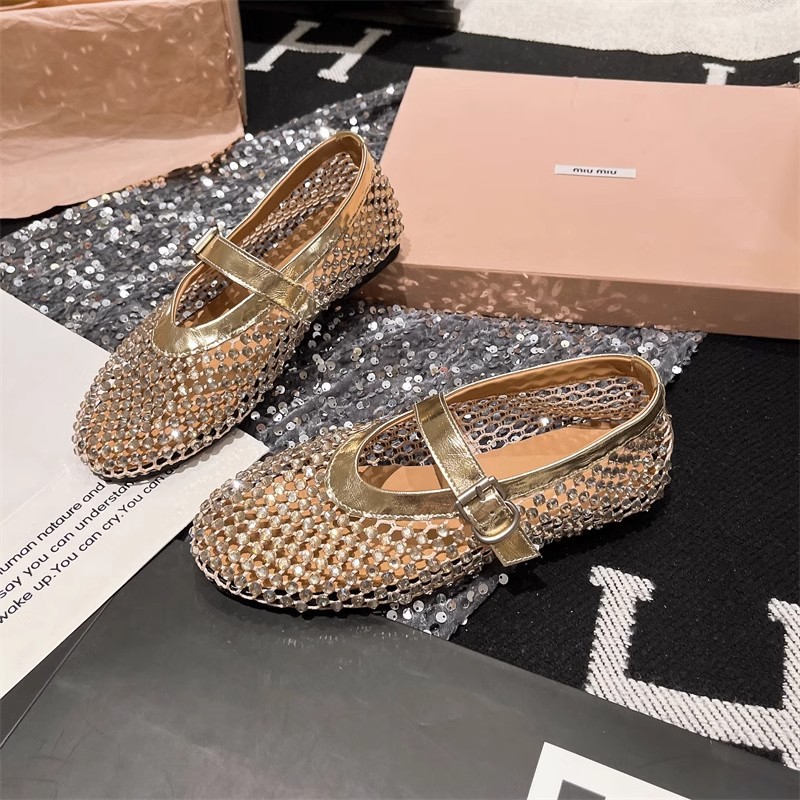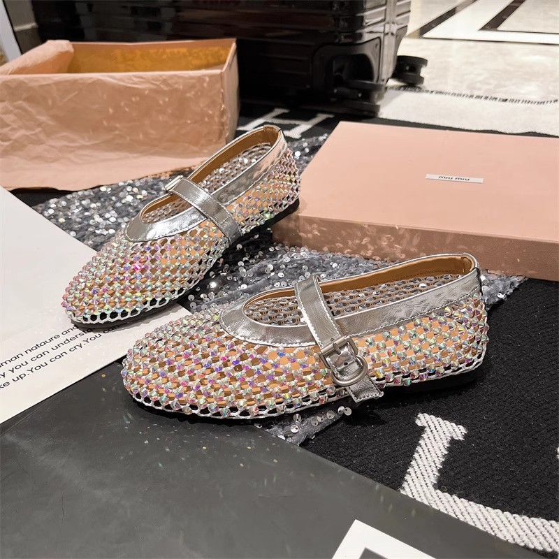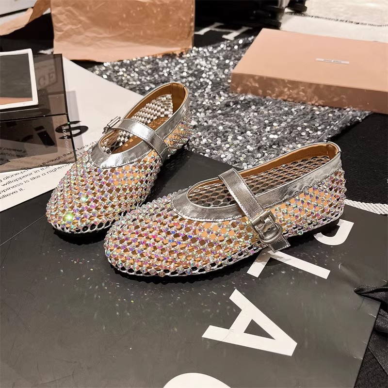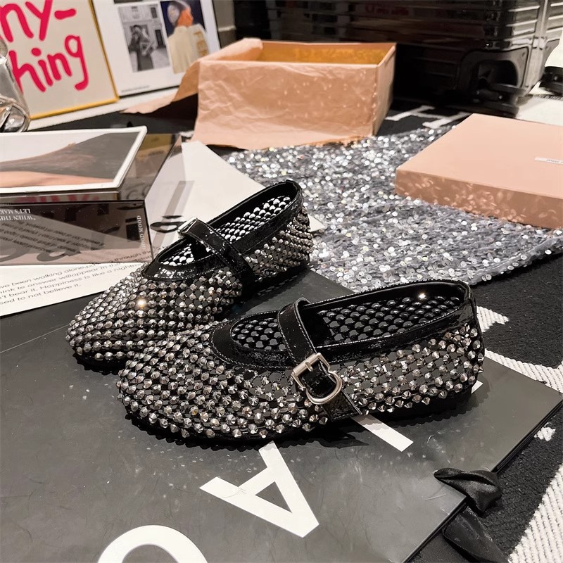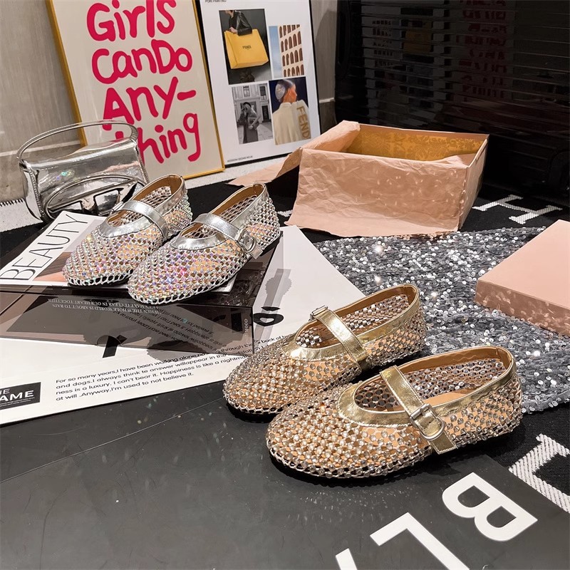라인스톤 원라인 메리제인 중공 메쉬 높이 4CM 발레 슈즈 망사 슈즈 여성용 로퍼