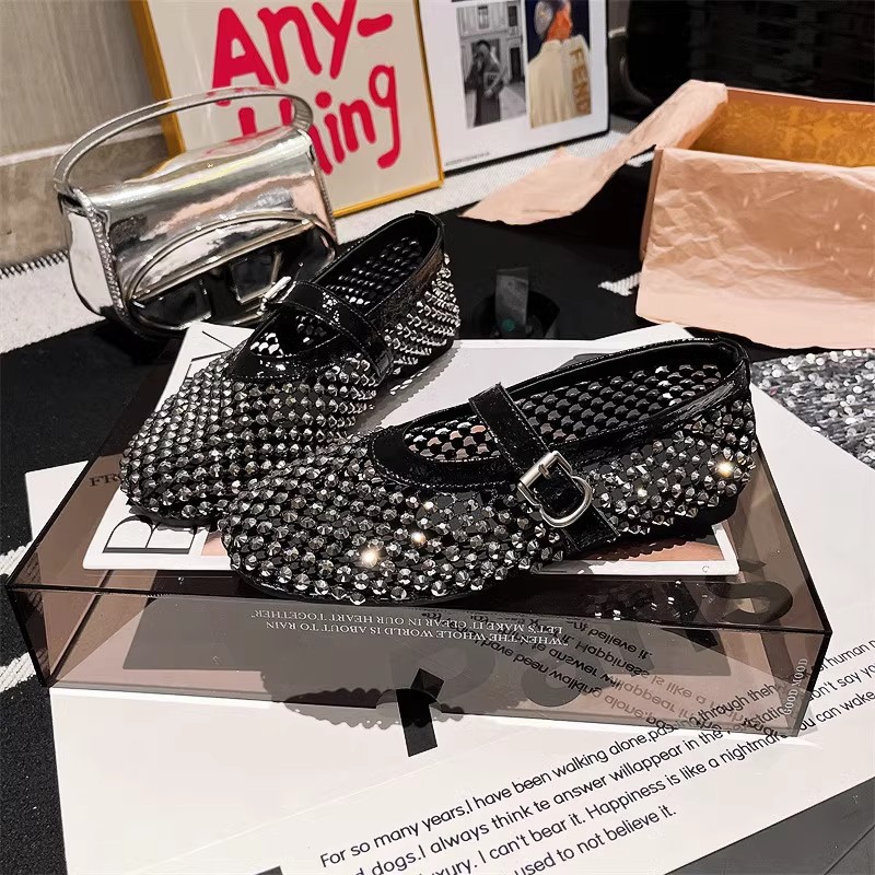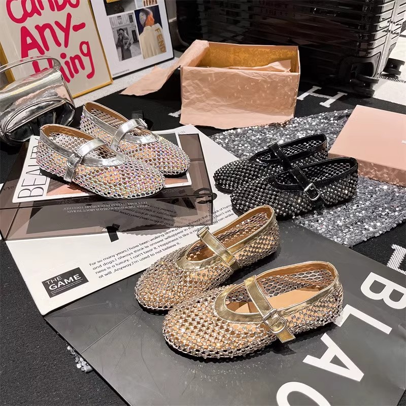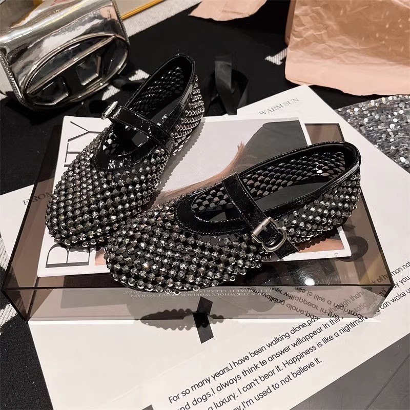 라인스톤 원라인 메리제인 중공 메쉬 높이 4CM 발레 슈즈 망사 슈즈 여성용 로퍼스토어 가기