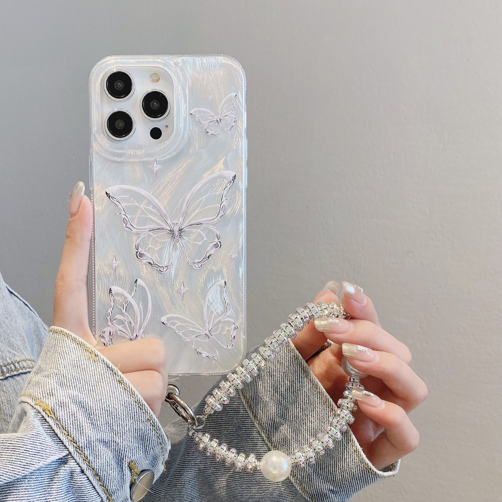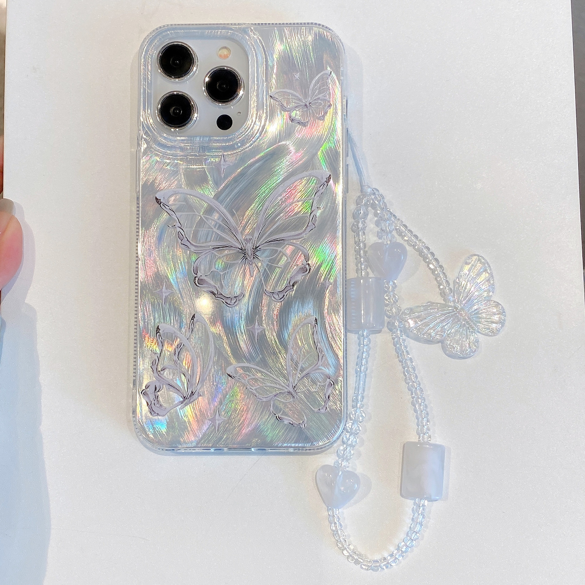 Feather Butterfly Apple 13 레이저 쉘 패턴 하드 쉘 iphone15 팔찌 14 하이 엔드 16 휴대 전화 케이스