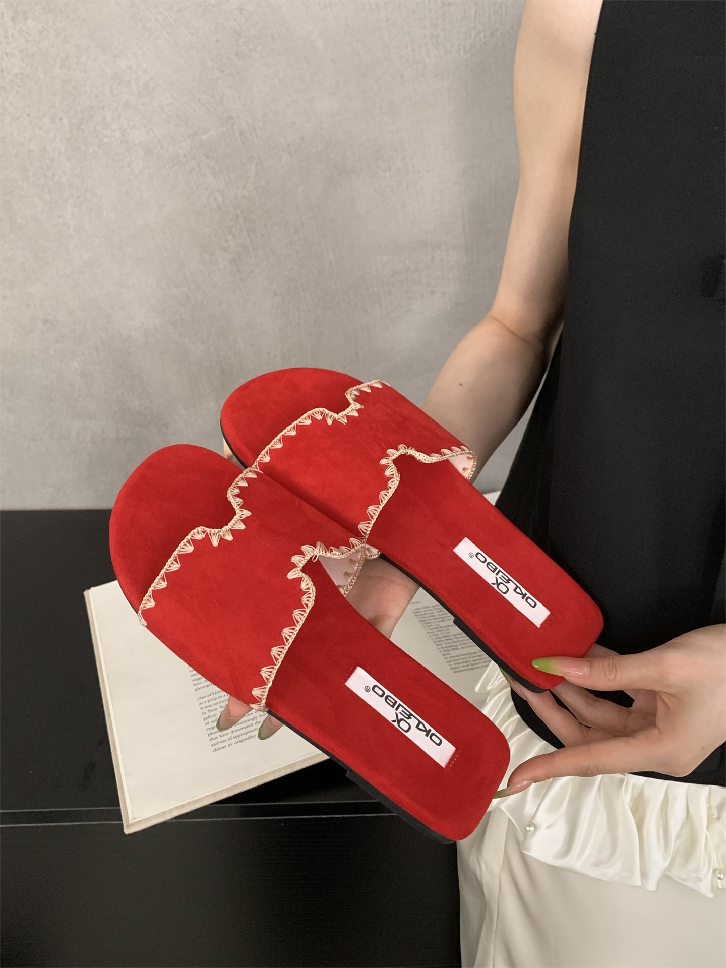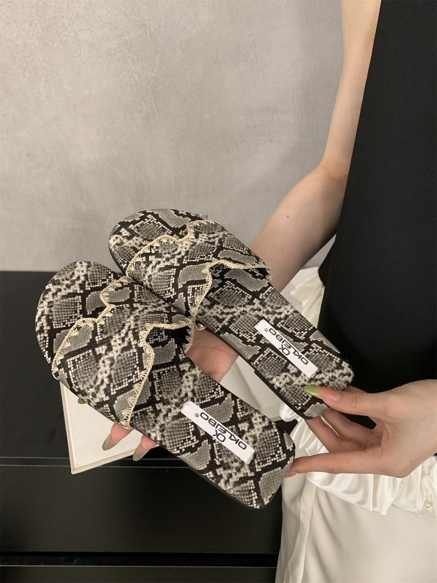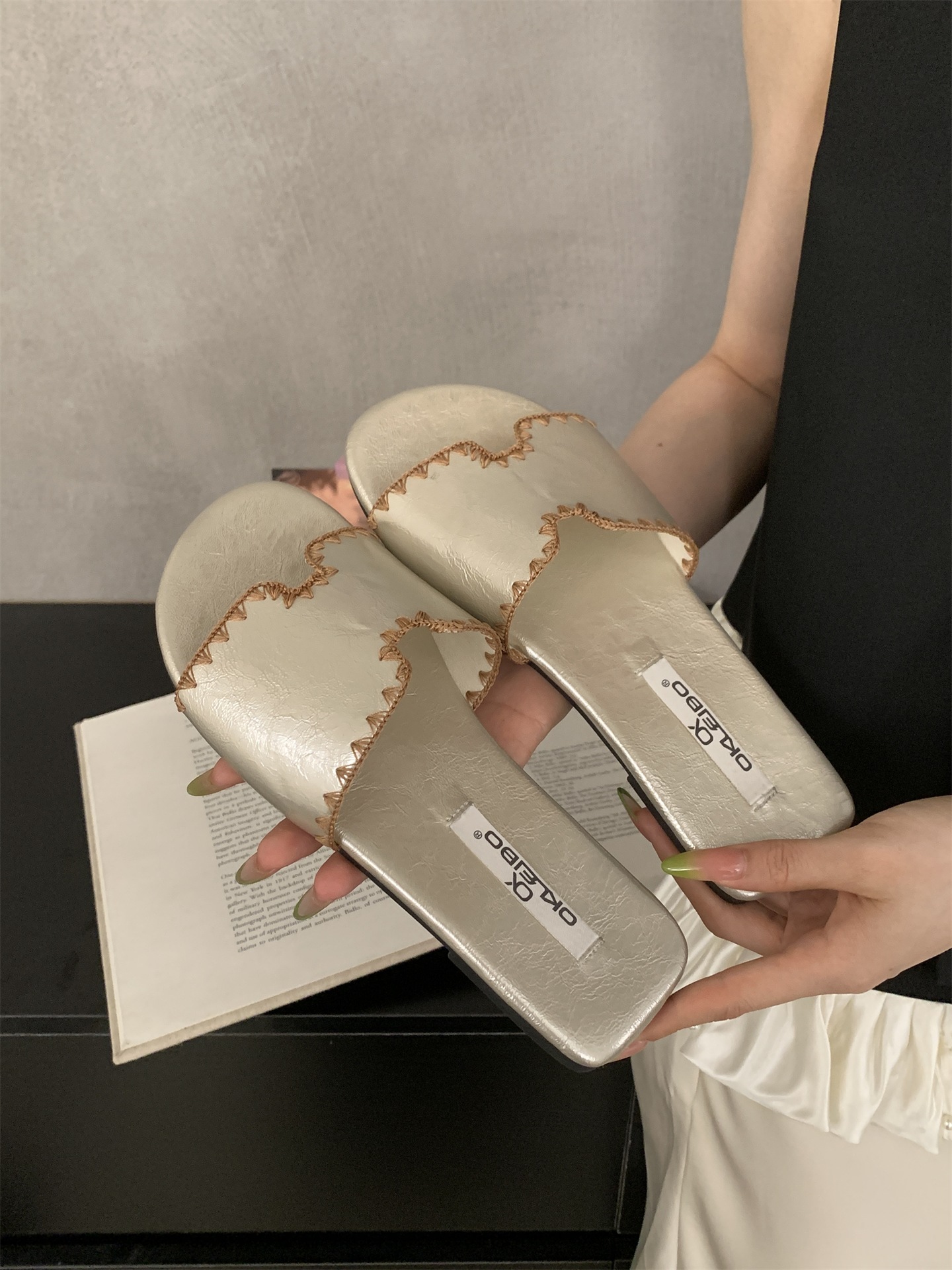 2025 새로운 인터넷 연예인 여름 스퀘어 헤드 H 자형 비치 슬리퍼 여성 샌들 외부 착용 부드러운 가죽 플랫 샌들스토어 가기