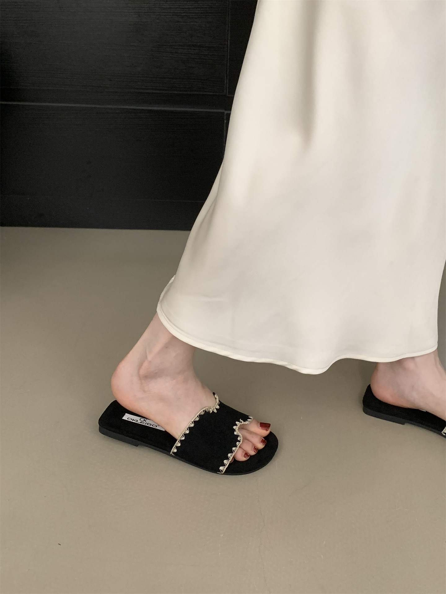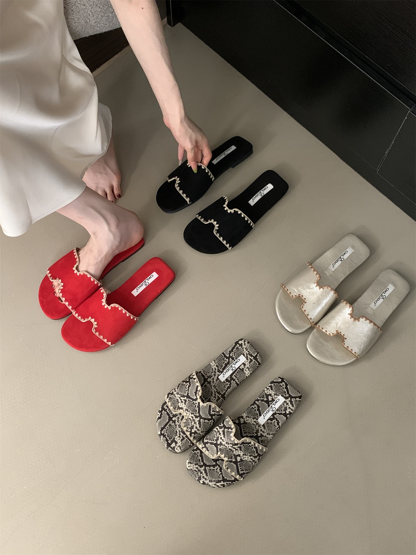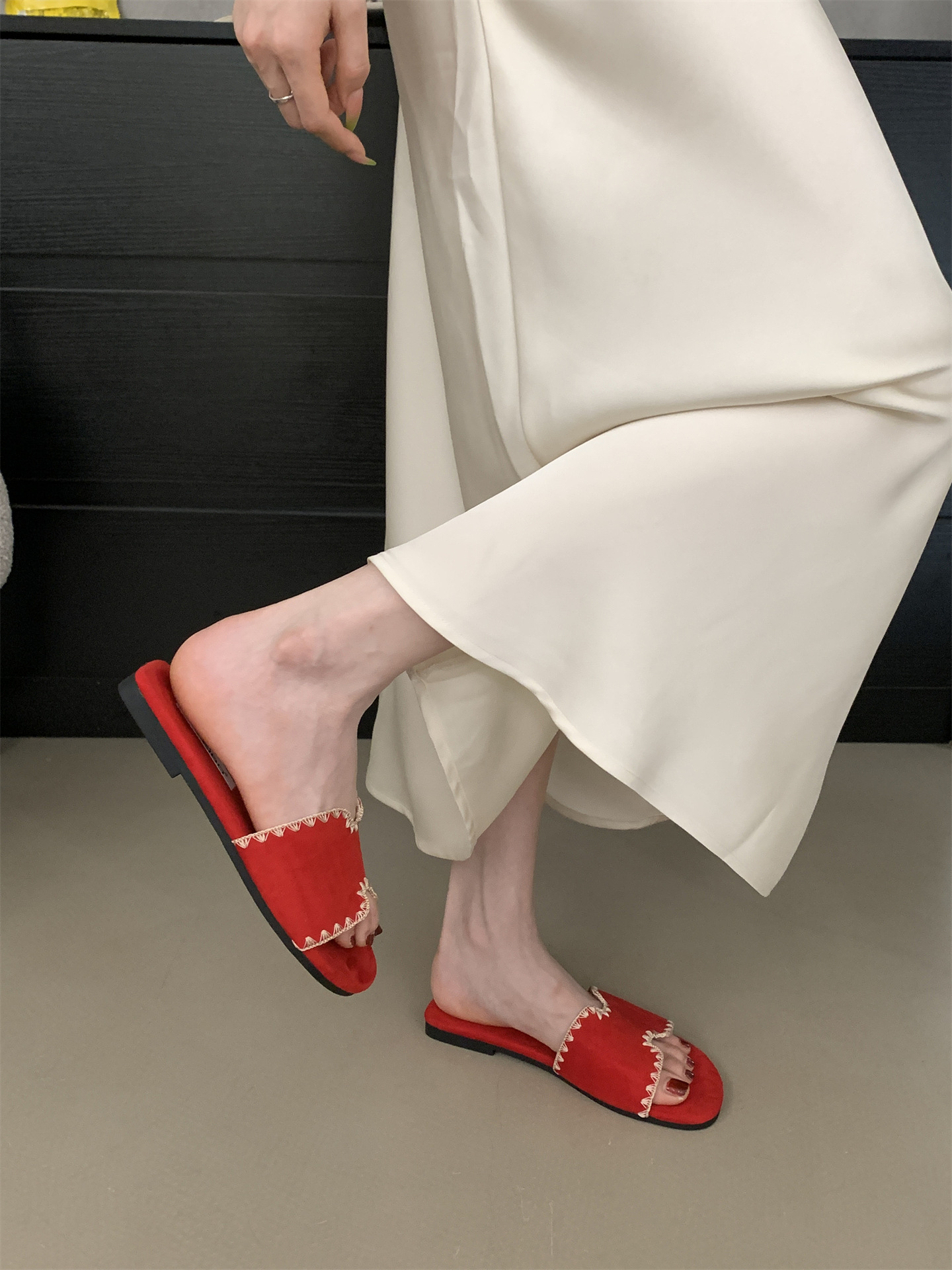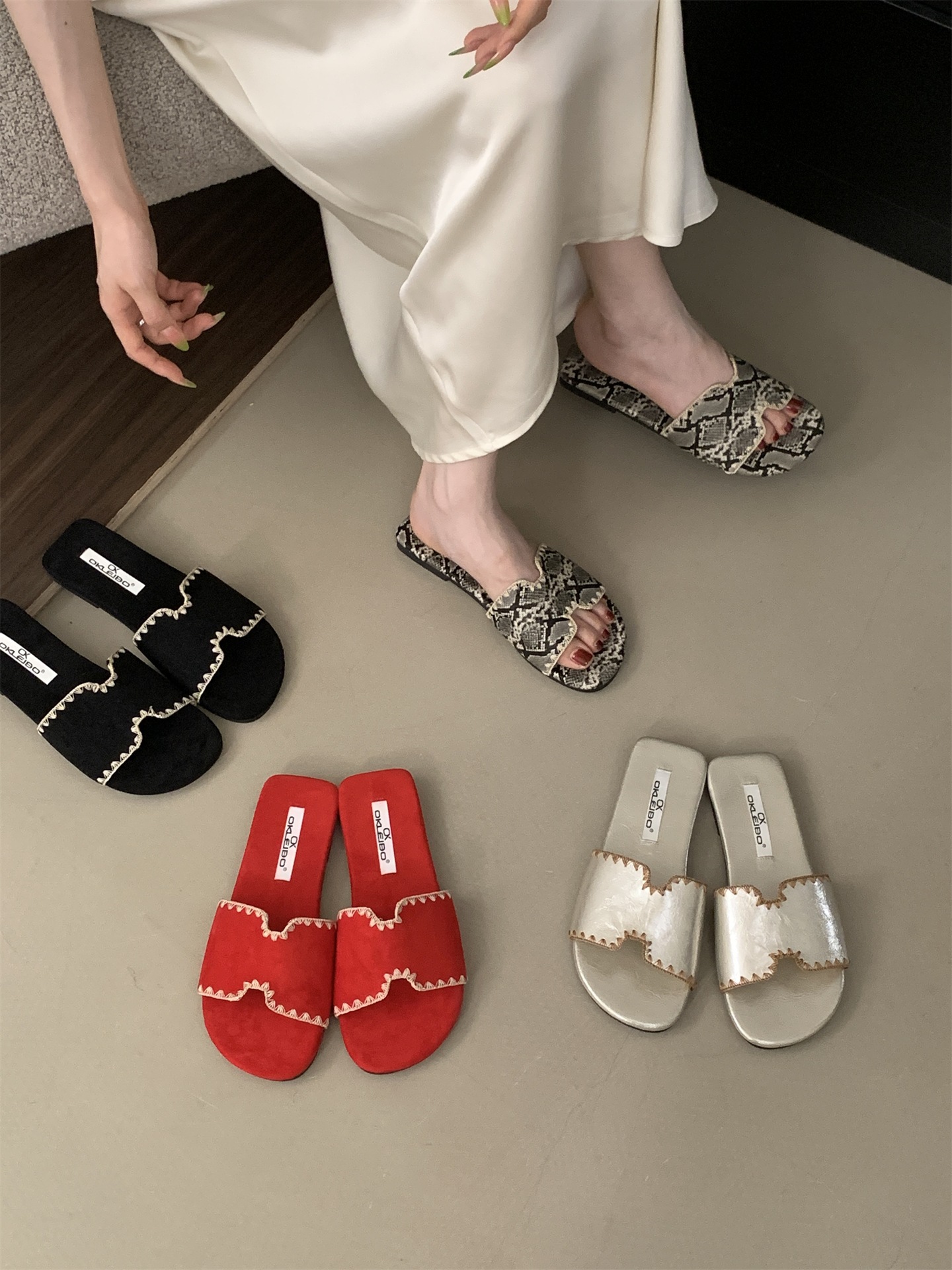 2025 새로운 인터넷 연예인 여름 스퀘어 헤드 H 자형 비치 슬리퍼 여성 샌들 외부 착용 부드러운 가죽 플랫 샌들