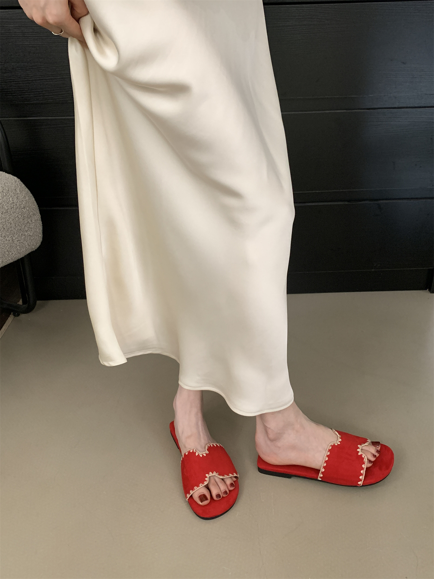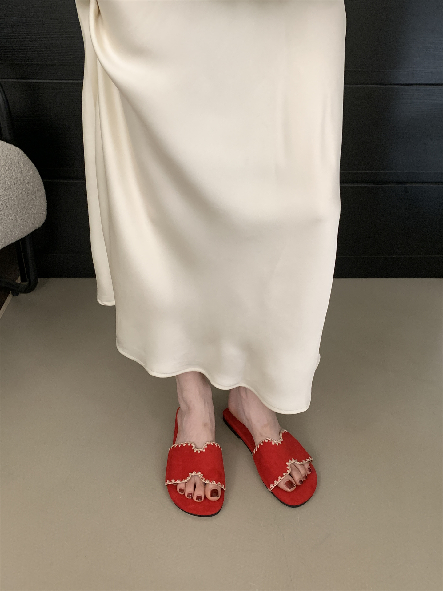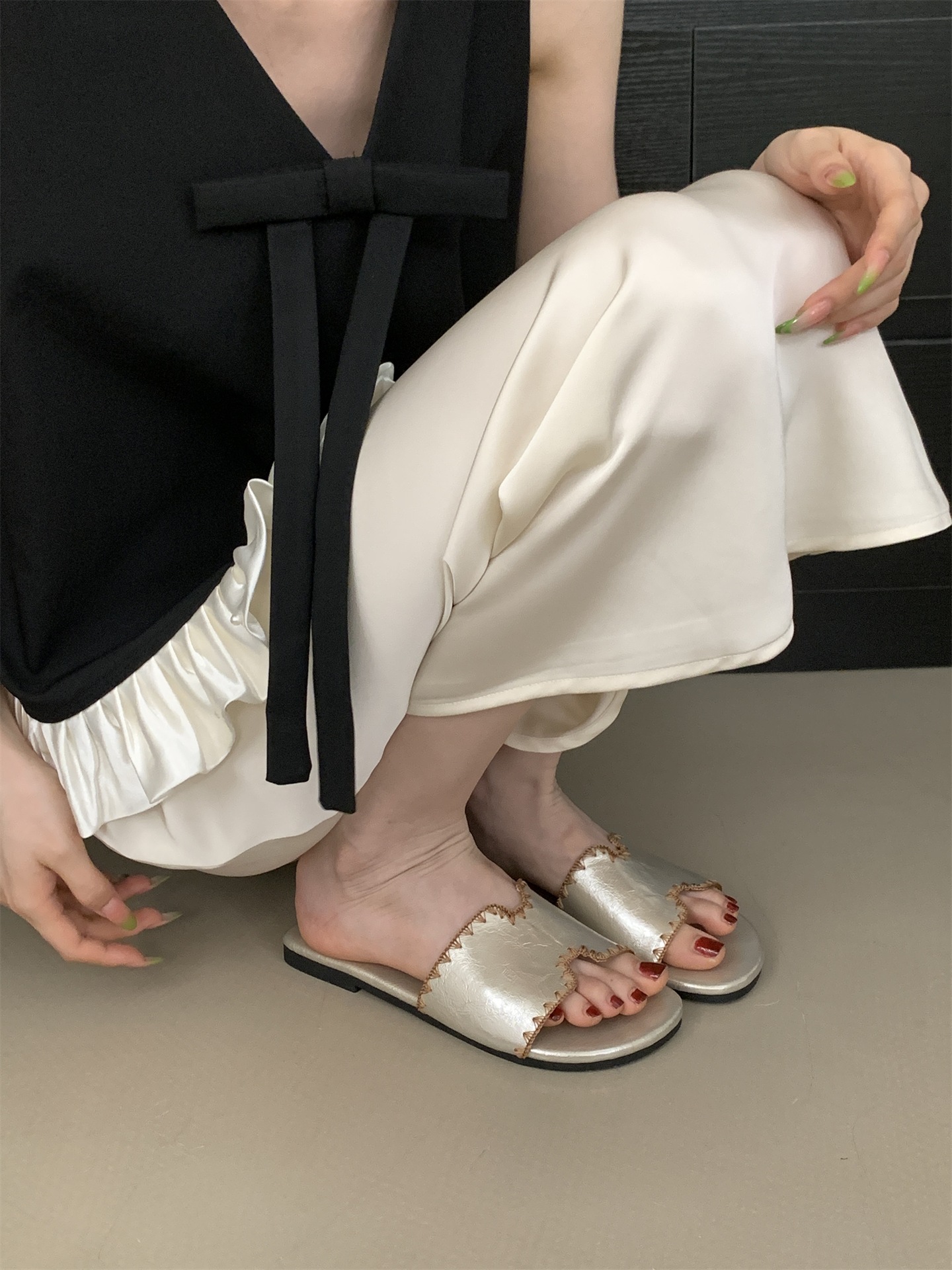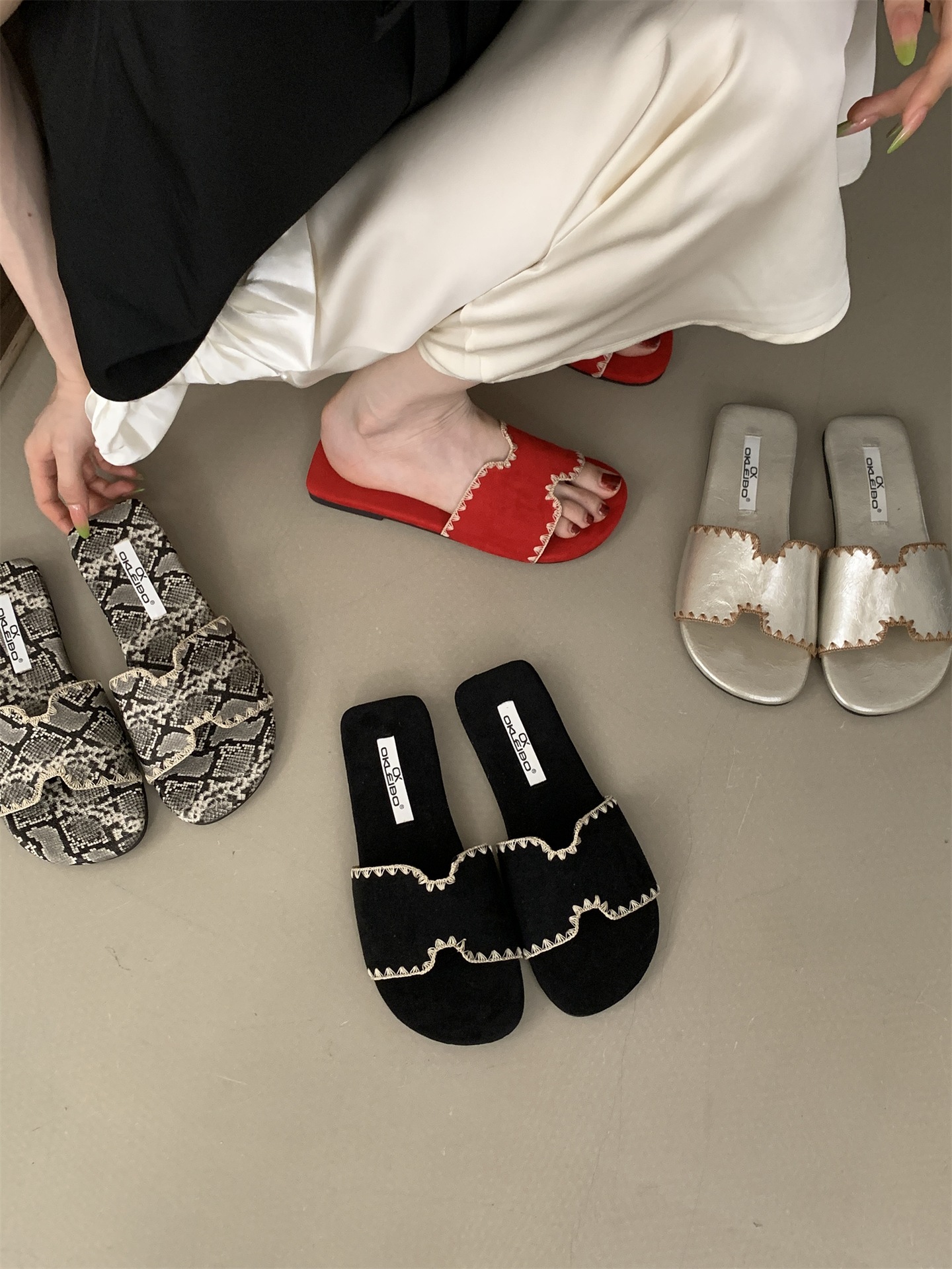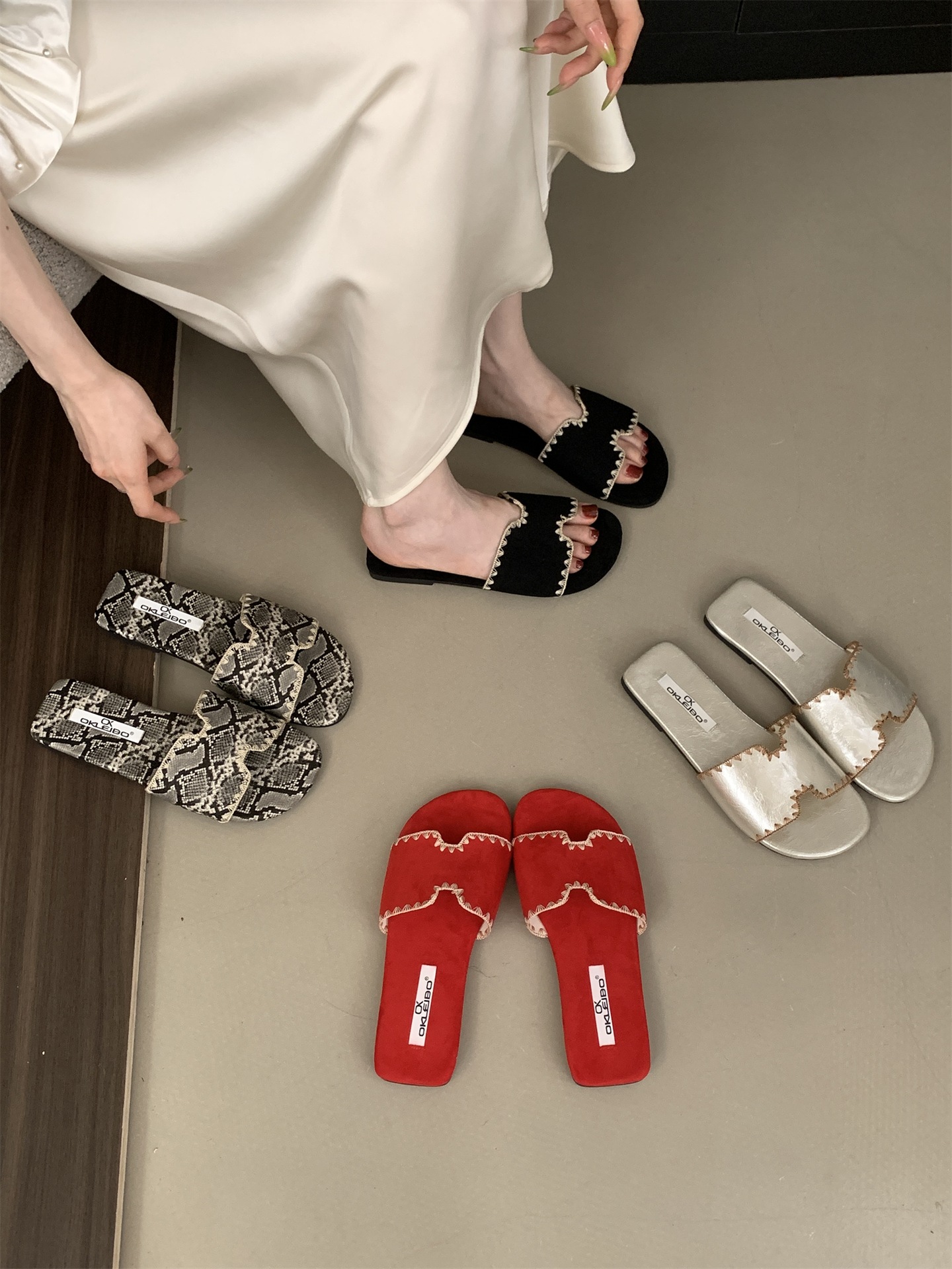 2025 새로운 인터넷 연예인 여름 스퀘어 헤드 H 자형 비치 슬리퍼 여성 샌들 외부 착용 부드러운 가죽 플랫 샌들