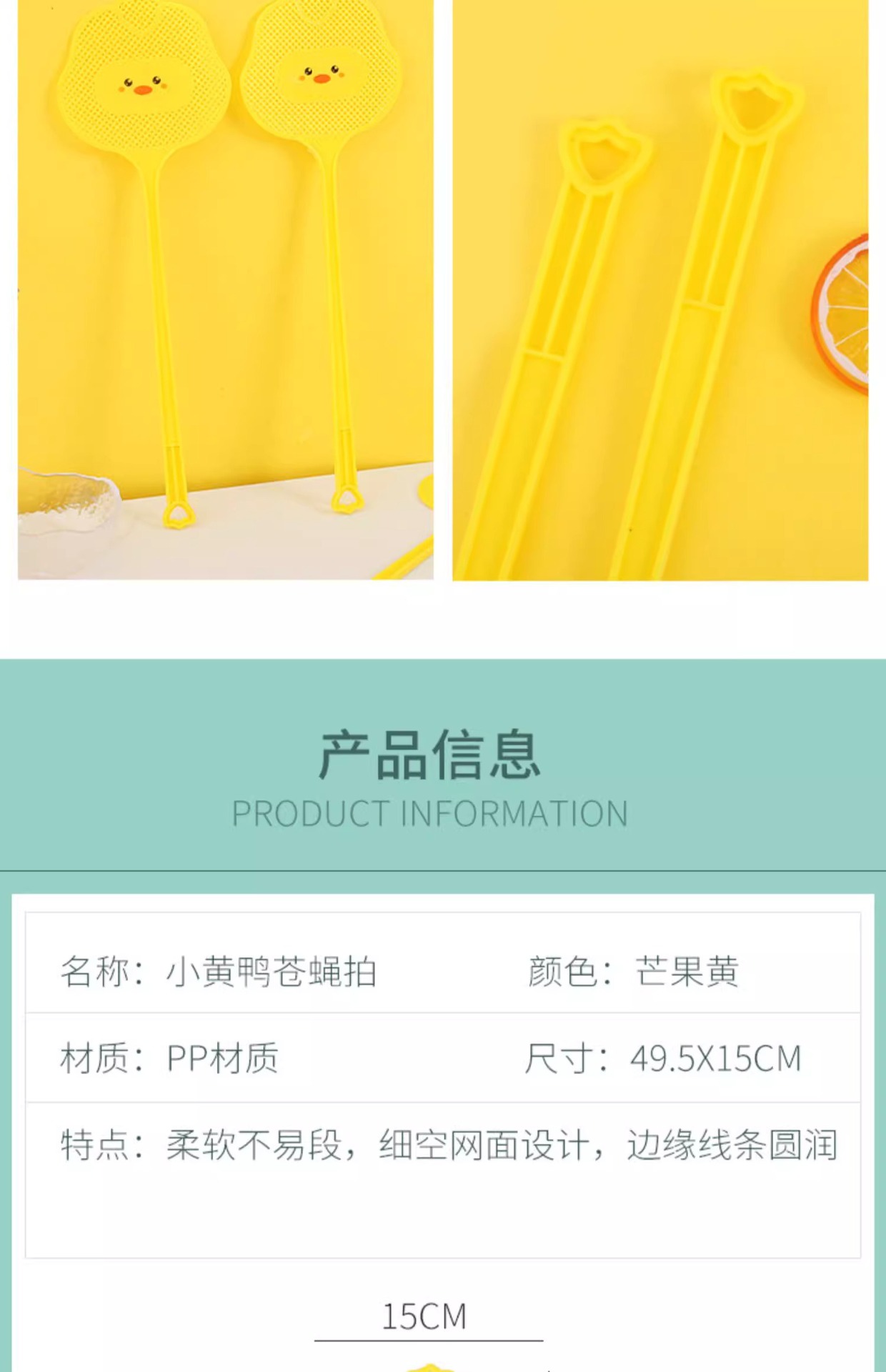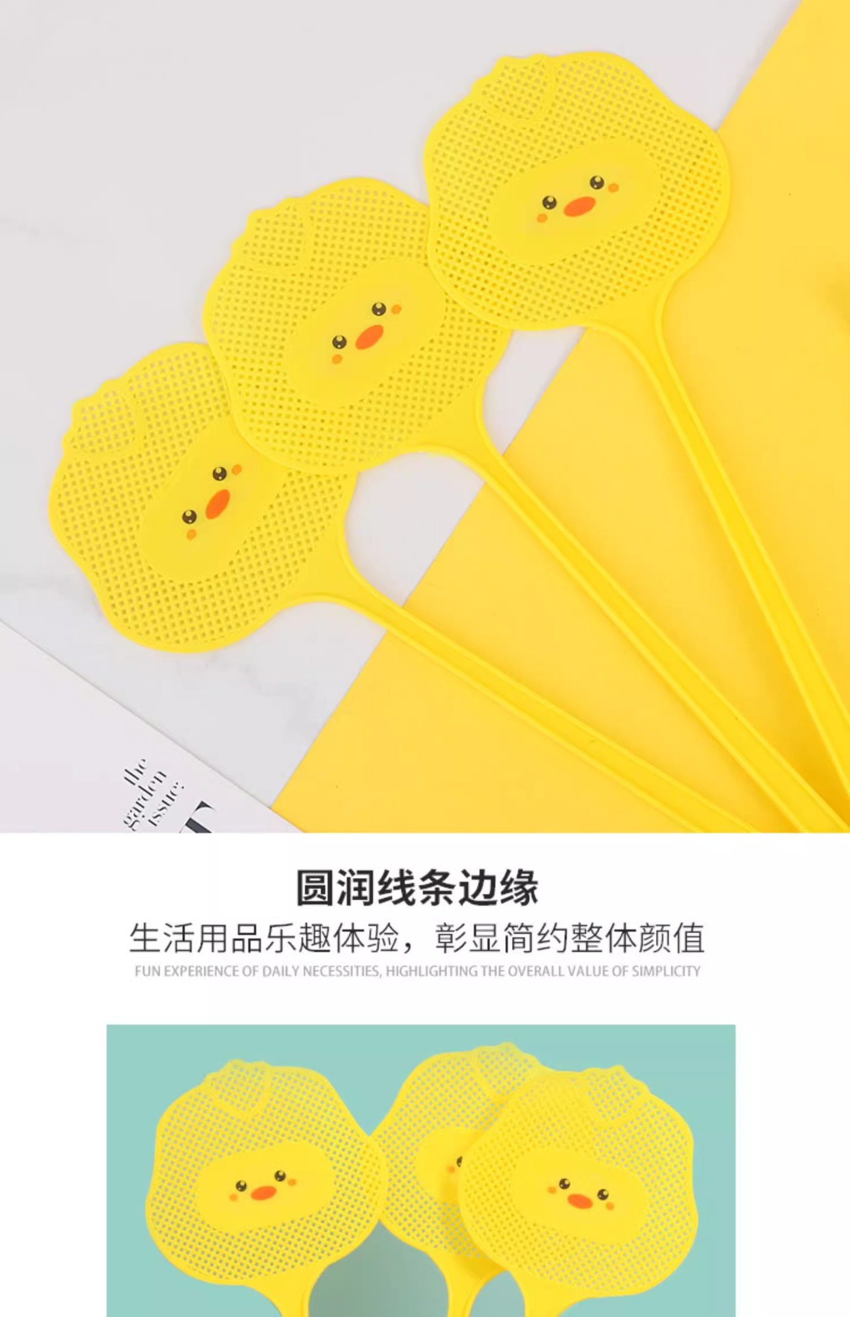 파리채, 모기채, 가정용 만화 내구성 작은 노란색 오리 플라스틱 두껍고 길어진 모기채, 모기 킬러