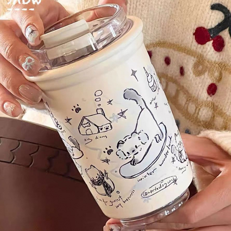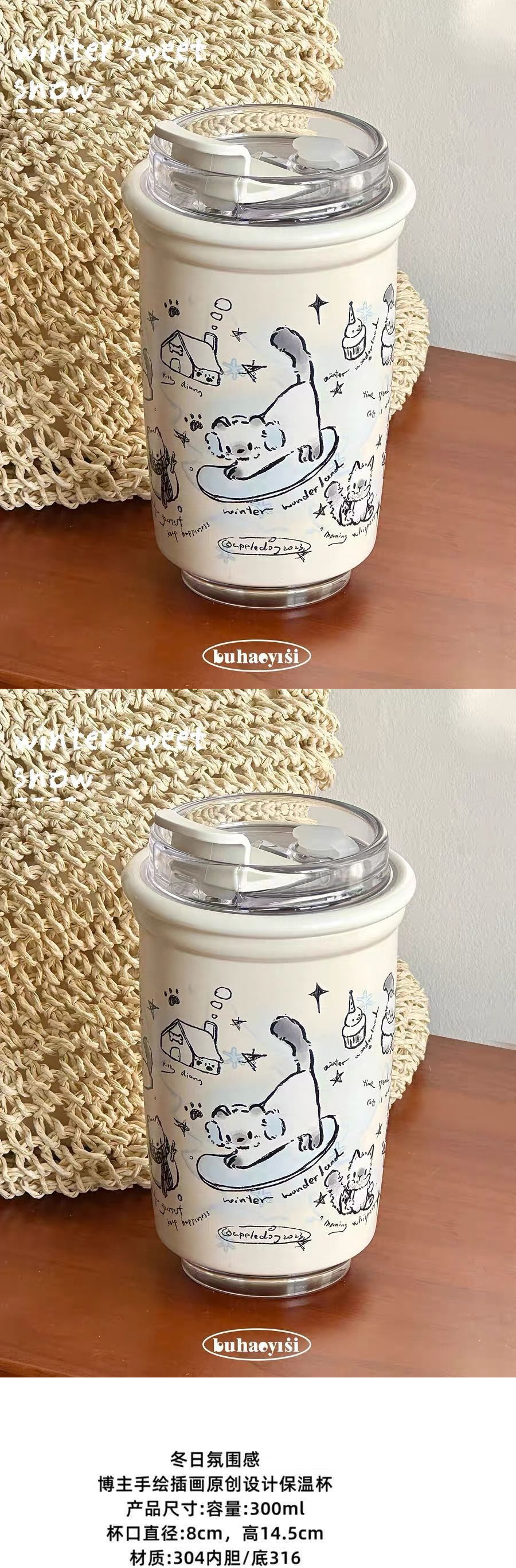 Ins 고급스러운 새끼 고양이 보온병 컵 304 스테인레스 스틸 밀짚 컵 틈새 귀여운 사무실 커피 컵스토어 가기