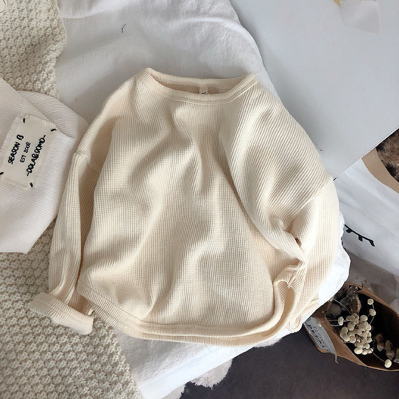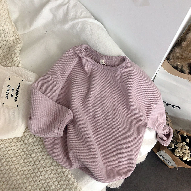 어린이 봄 와플 바닥 셔츠 간단한 봄 단색 긴팔 티셔츠 소년 소녀 아기 한국식 재킷 도매스토어 가기