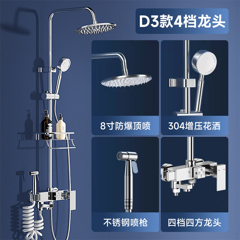 • D3 [브라이트 실버] - 4단 고급 구리 수전 - 프리 수납선반이 포함된 스테인리스 스틸 세트