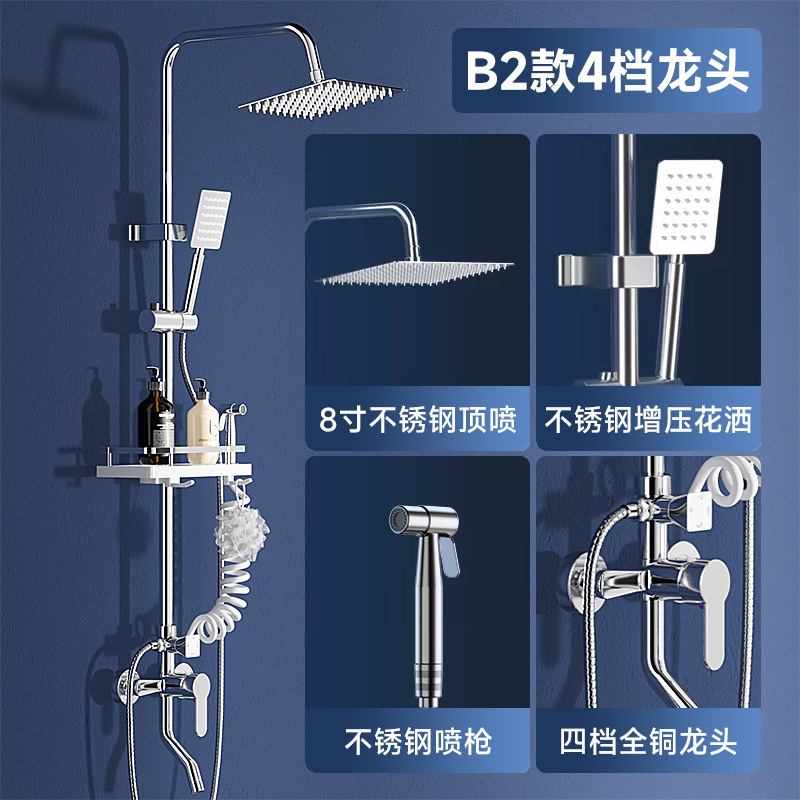 • D2【브라이트 실버】-4단 고급 구리 수전-스테인리스 스틸 세트(무료 보관함 포함)