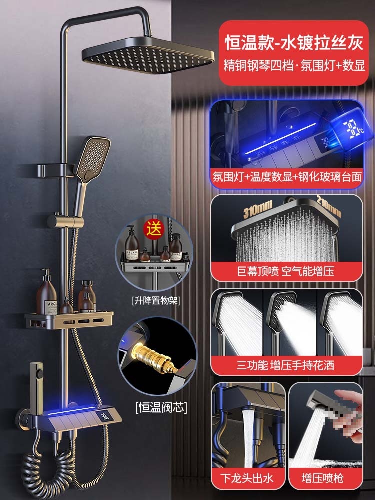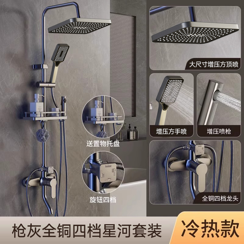 • [임펄스 모델] 프리 수납선반이 포함된 블랙 파인 구리 4단 스카이 샤워 세트