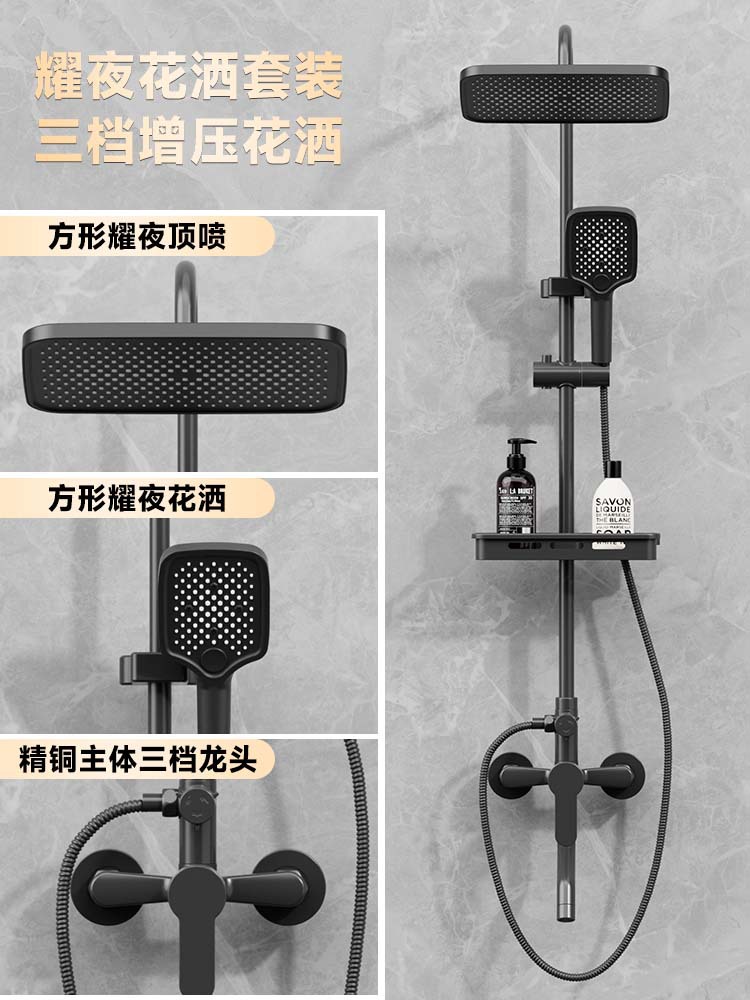 • [임펄스 모델] 프리 수납선반이 포함된 블랙 파인 구리 3단 스카이 샤워 세트