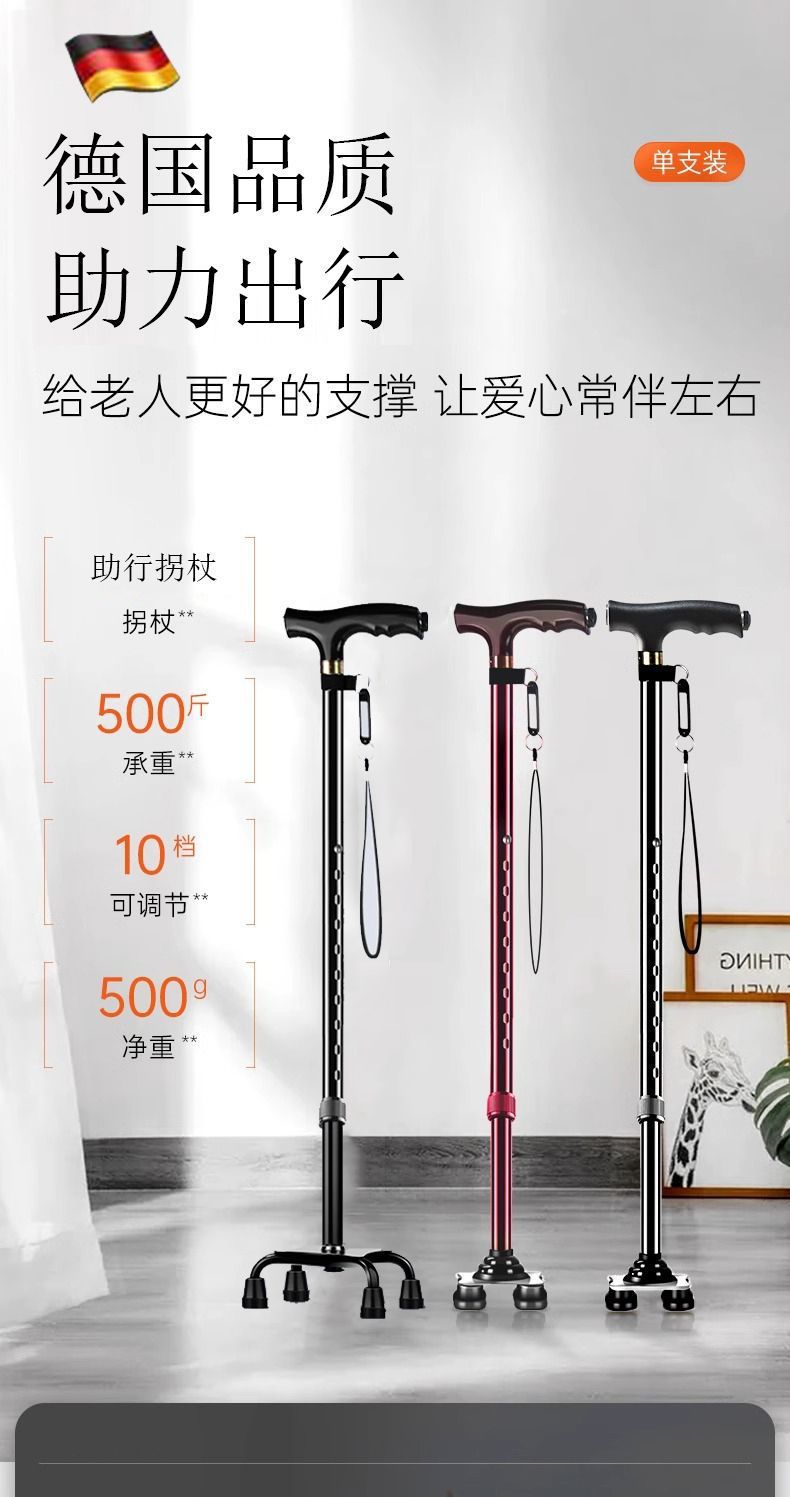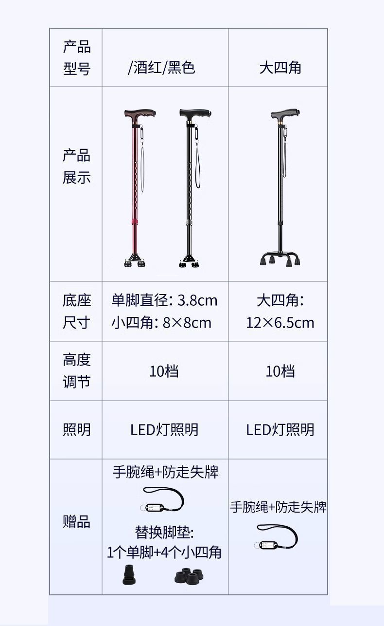 노인용 미끄럼 방지 지팡이, 노인용 4발 지팡이, 경량 다기능 조명, 낙하 방지용 알루미늄 합금 텔레스코픽 지팡이스토어 가기