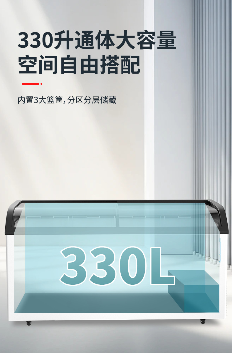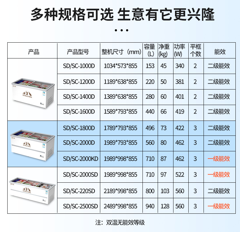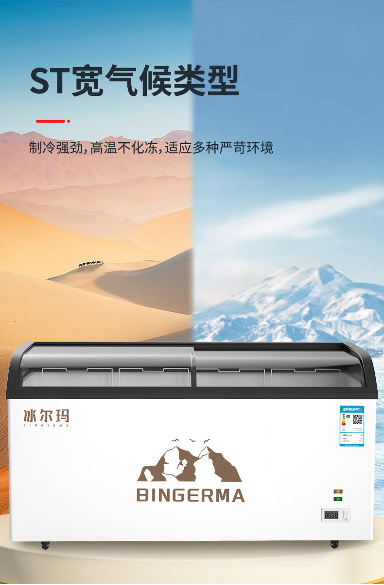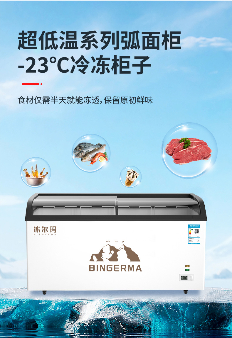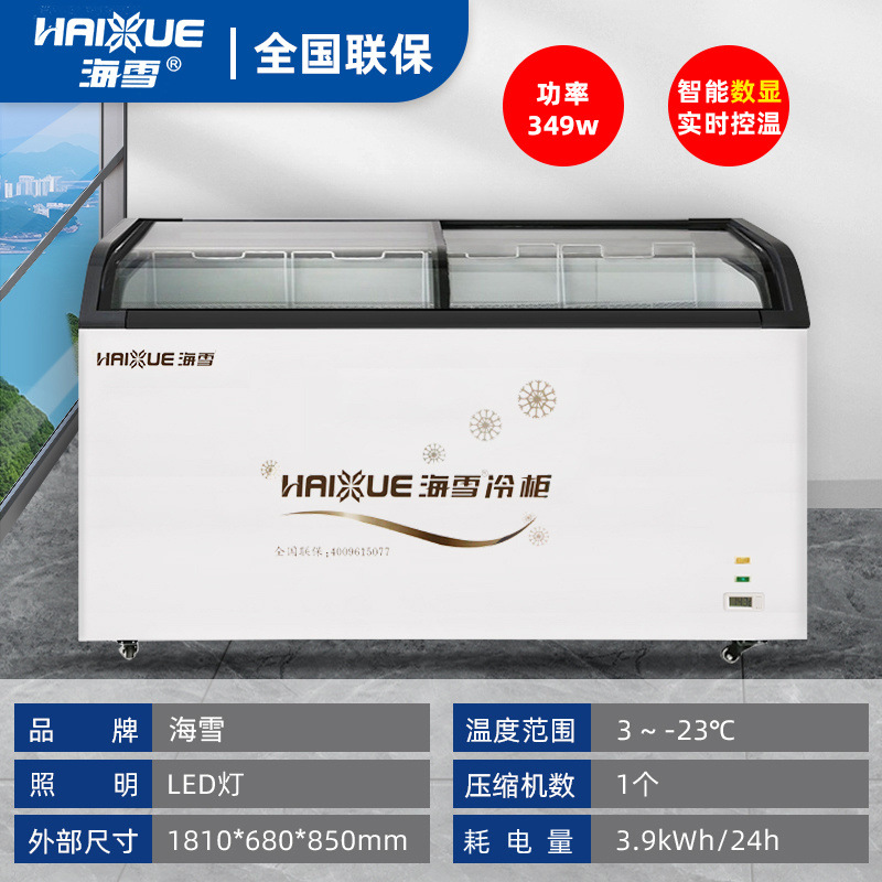 냉동고 상업용 대용량 아일랜드 캐비닛 투명 냉장고 유리 수평 냉동고 신선 유지 및 냉동 이중 목적 냉장 디스플레이 캐비닛