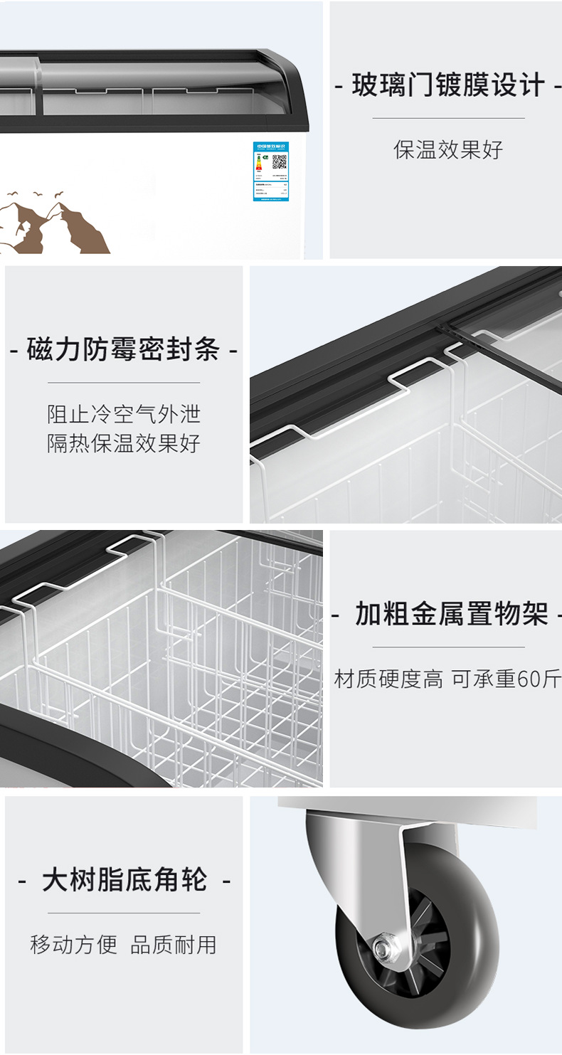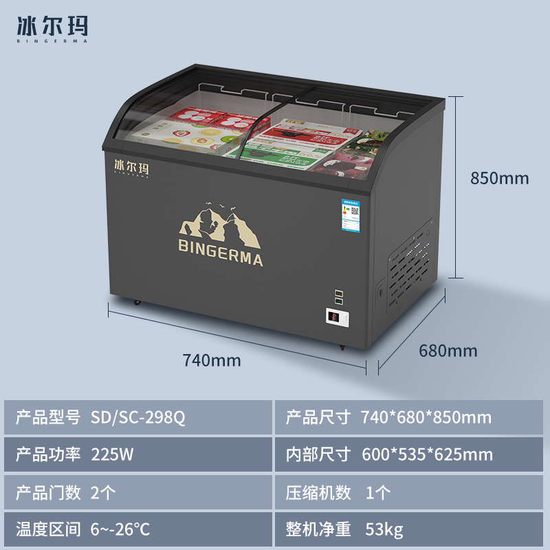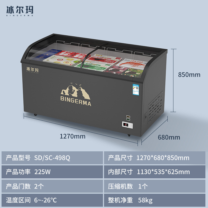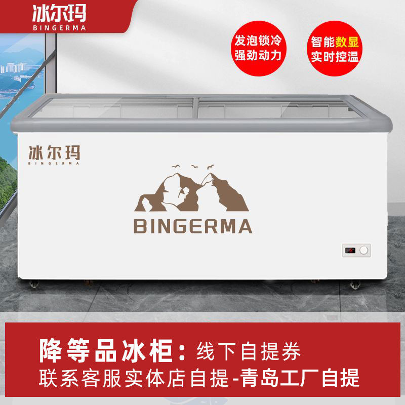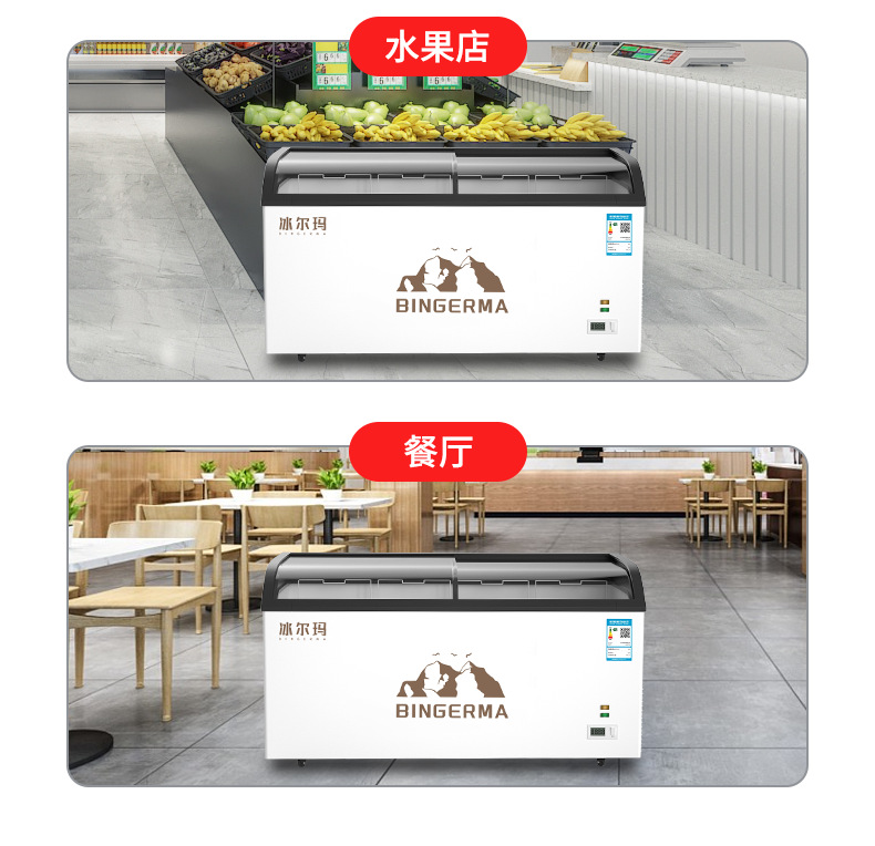 냉동고 상업용 대용량 아일랜드 캐비닛 투명 냉장고 유리 수평 냉동고 신선 유지 및 냉동 이중 목적 냉장 디스플레이 캐비닛스토어 가기