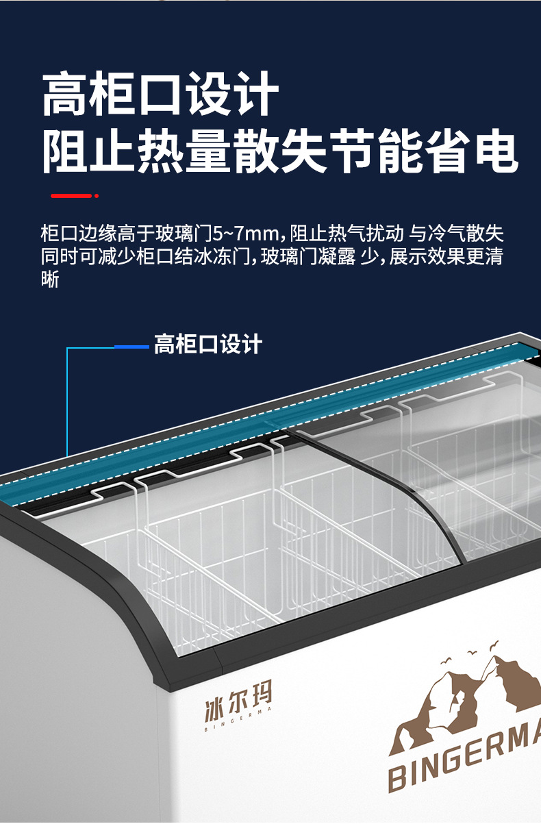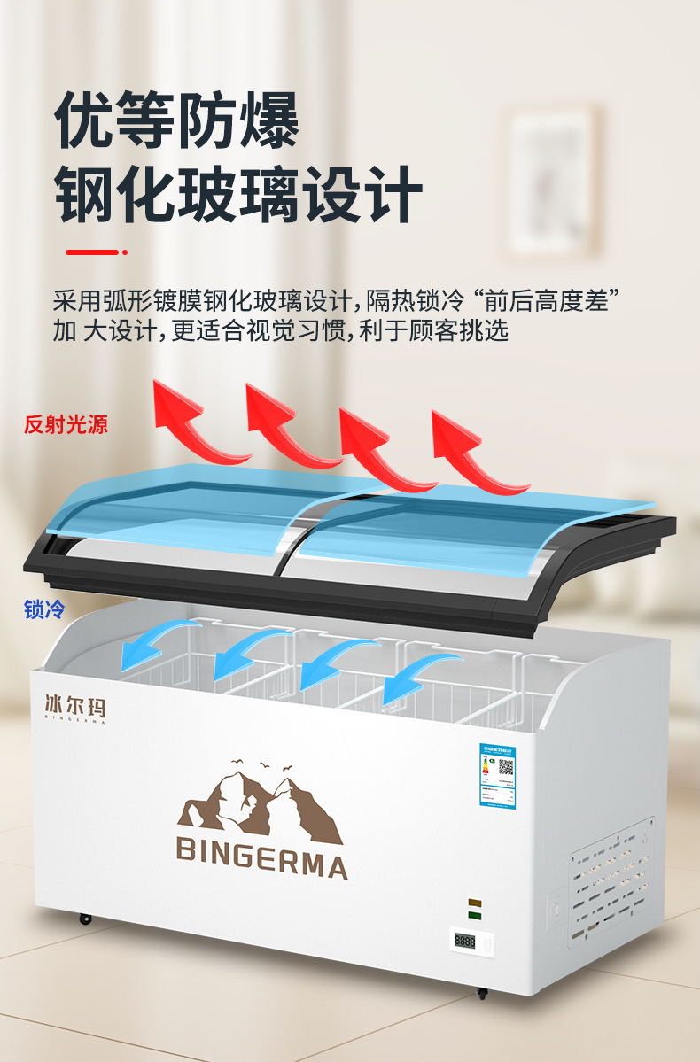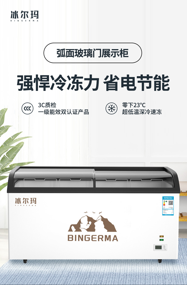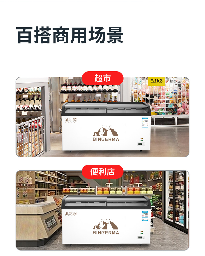 냉동고 상업용 대용량 아일랜드 캐비닛 투명 냉장고 유리 수평 냉동고 신선 유지 및 냉동 이중 목적 냉장 디스플레이 캐비닛스토어 가기
