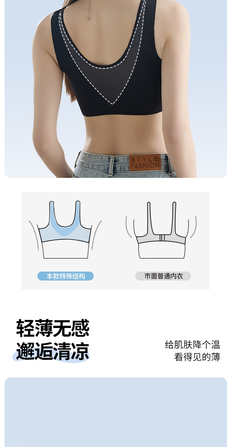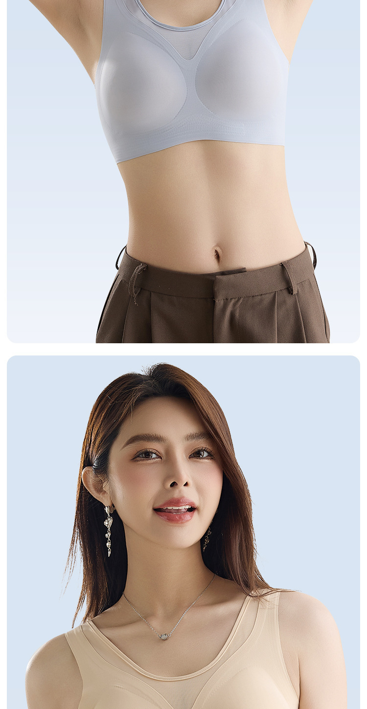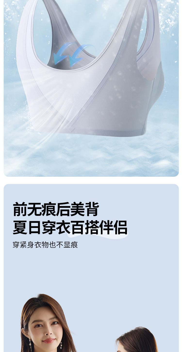 여름철 여성을 위한 심리스 아이스 실크 속옷, 얇고 큰 가슴, 시원한 느낌, 와이어 프리 스포츠 베스트 스타일 브라스토어 가기