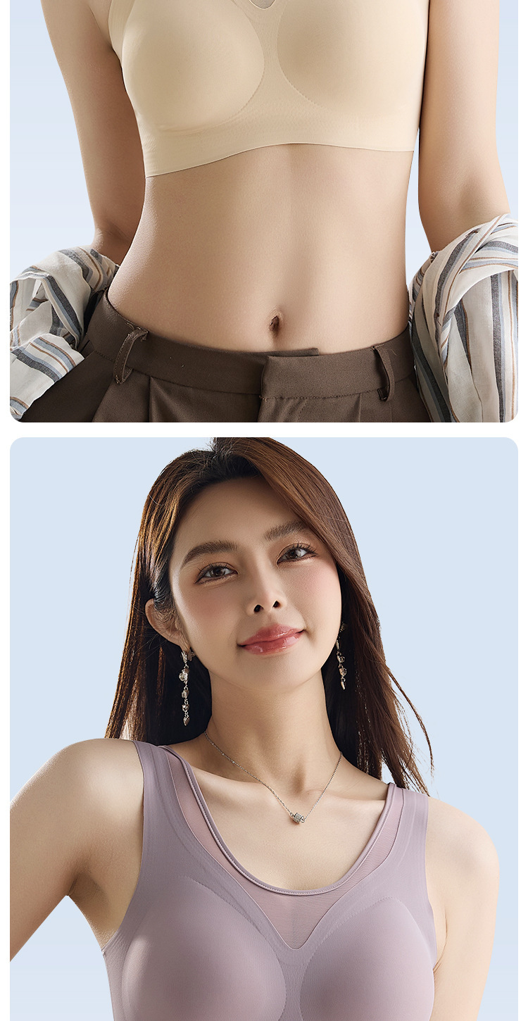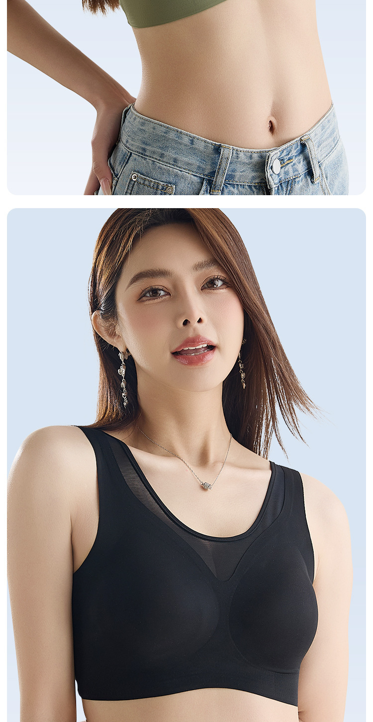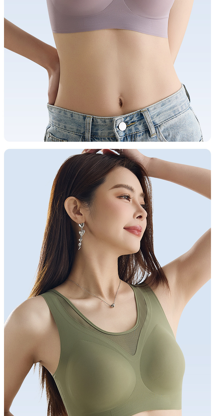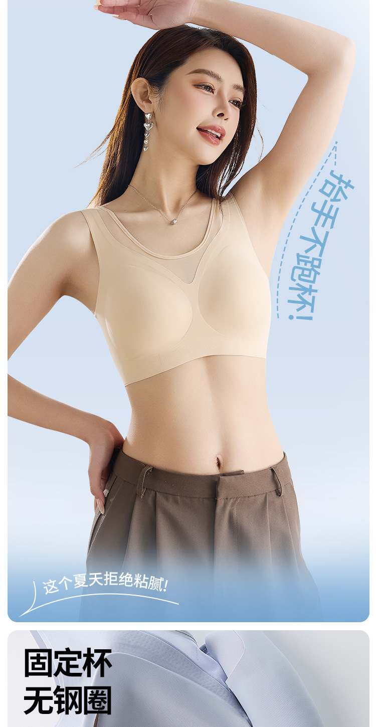 여름철 여성을 위한 심리스 아이스 실크 속옷, 얇고 큰 가슴, 시원한 느낌, 와이어 프리 스포츠 베스트 스타일 브라스토어 가기