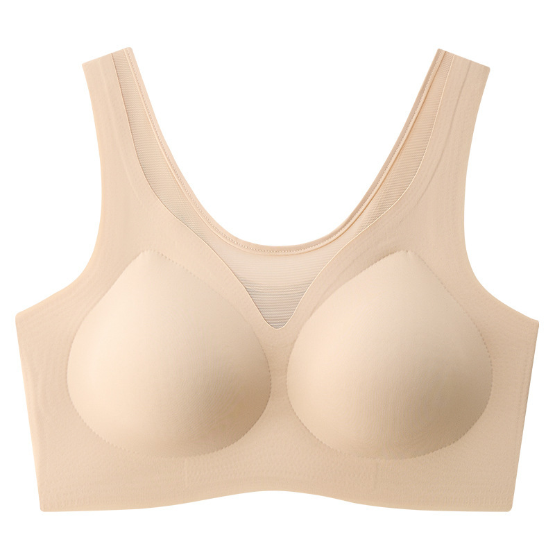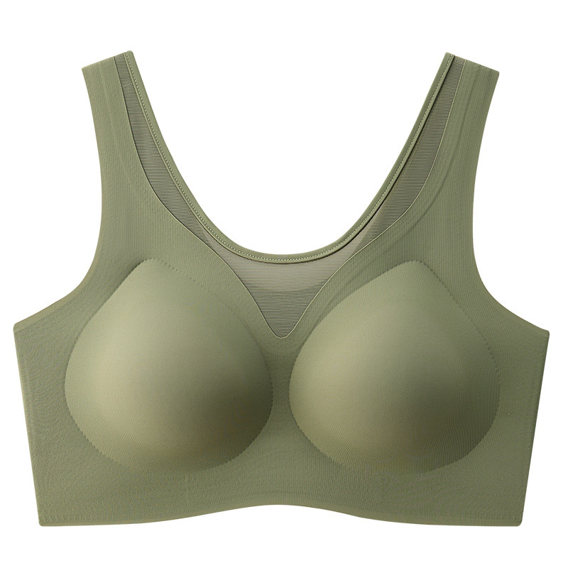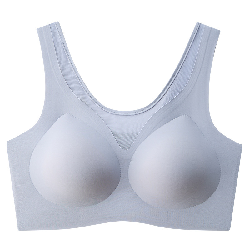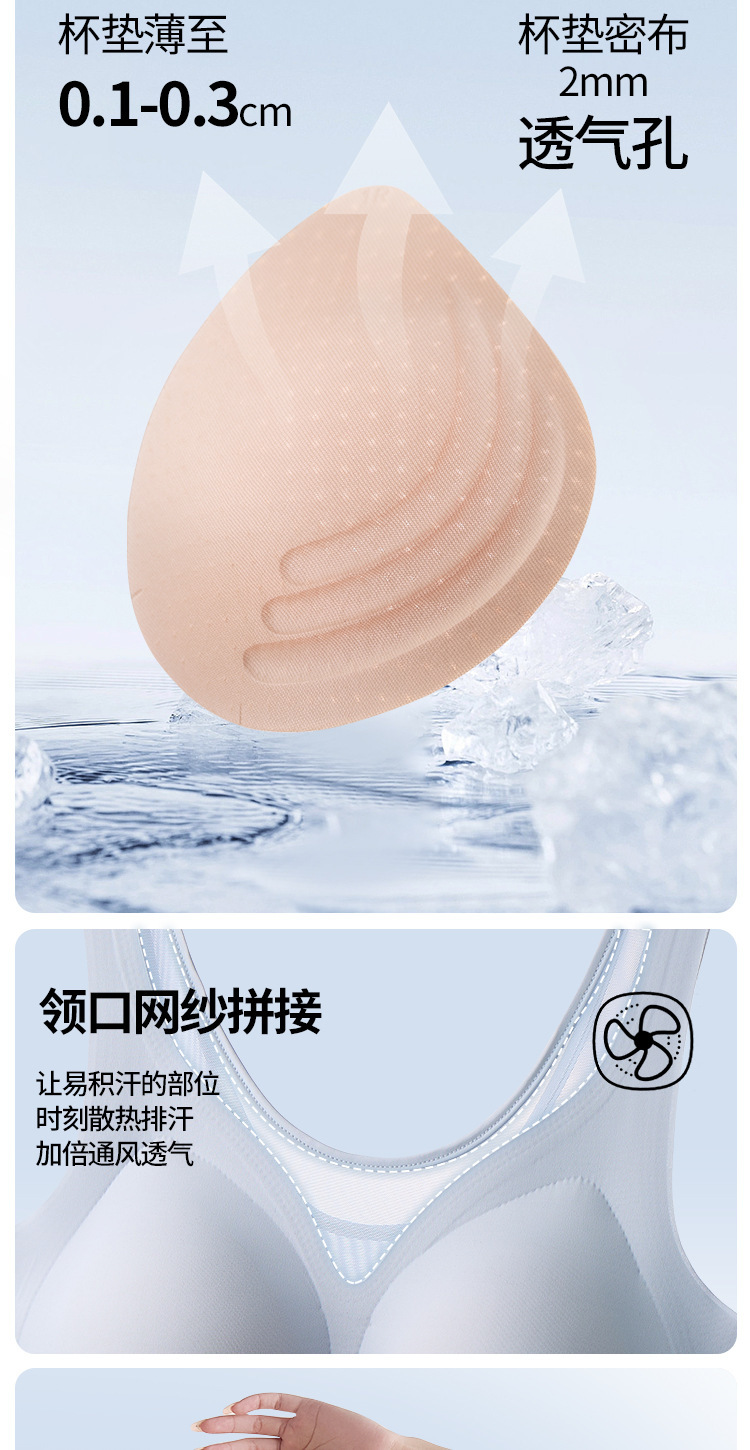 여름철 여성을 위한 심리스 아이스 실크 속옷, 얇고 큰 가슴, 시원한 느낌, 와이어 프리 스포츠 베스트 스타일 브라