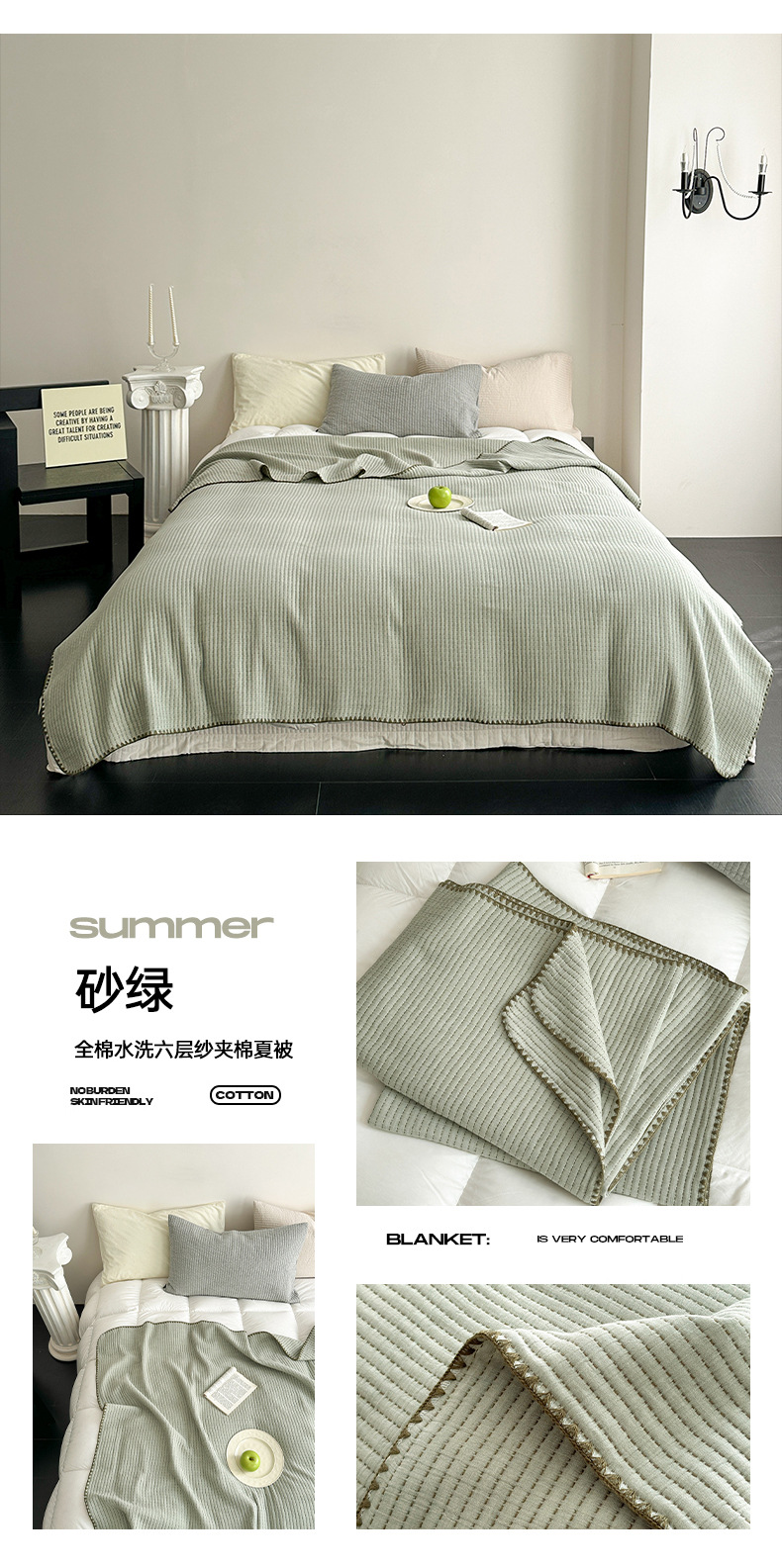 2025 신형 순면 워싱 6겹 거즈 누비 여름 이불 여름 시원한 이불 에어컨 이불 여름 싱글 침대 더블스토어 가기