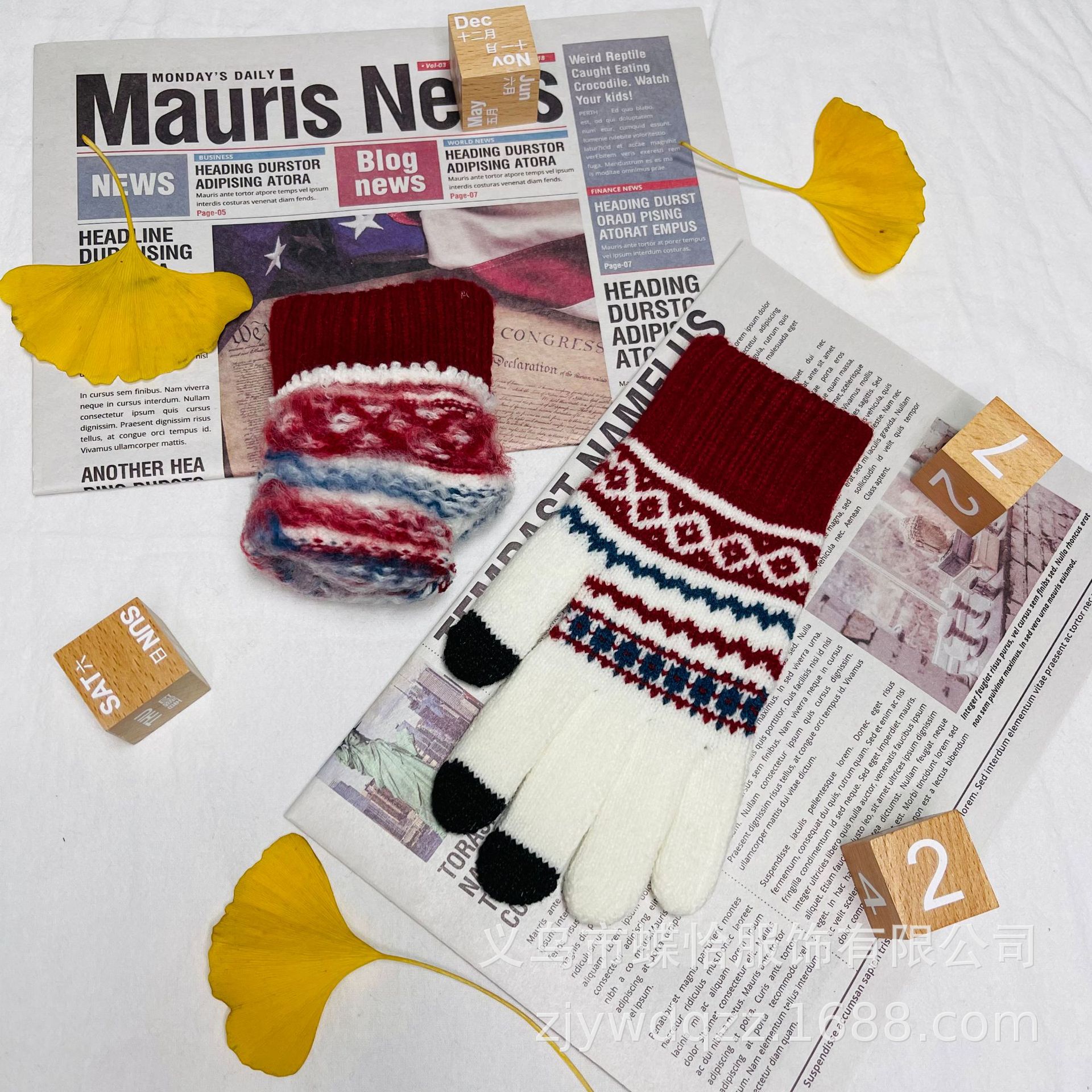 길거리 노점 공급 장갑 도매 겨울 방한 남성 및 여성 니트 벨벳 두꺼운 따뜻한 터치 스크린 장갑 제조 업체스토어 가기