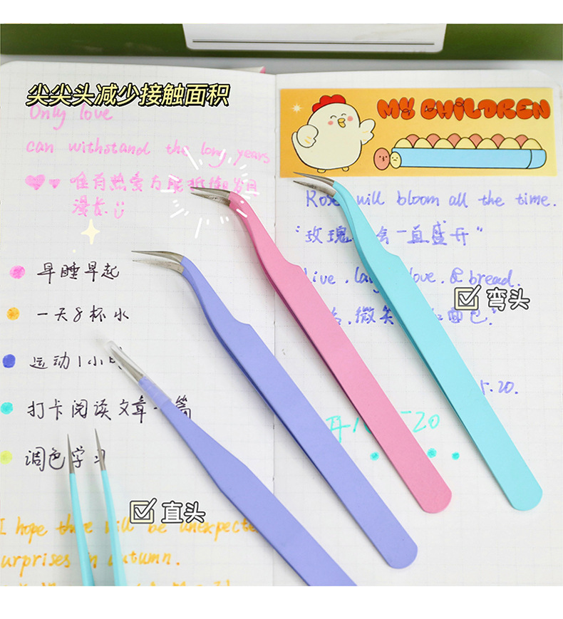 Macaron 컬러 손 계정 족집게가 두꺼운 팔꿈치 네일 아트 족집게 손 계정 도구 거짓 속눈썹 족집게