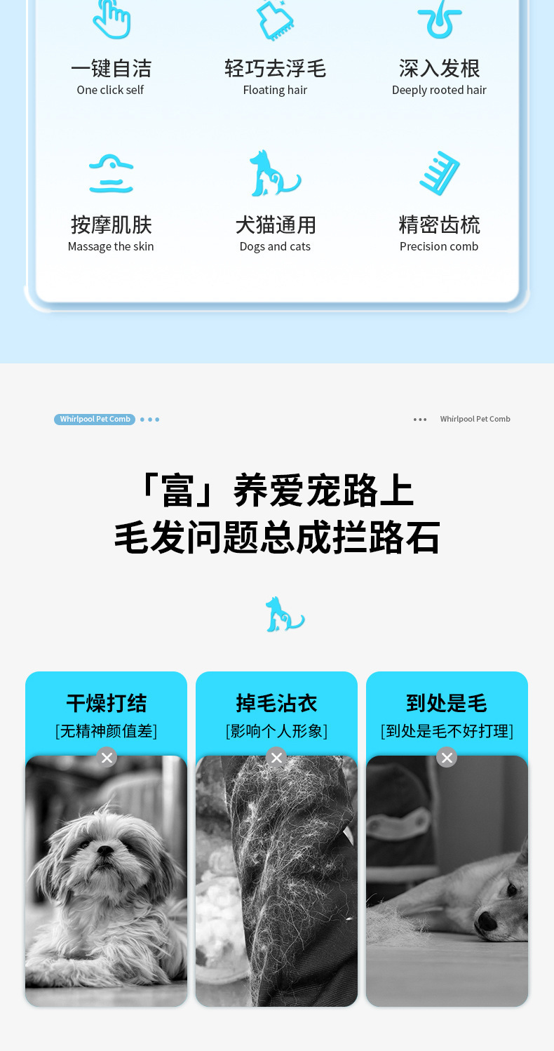 애완동물 자가 세척 빗, 고양이 빗, 개 털 브러시, 고양이용 바늘 빗, 소용돌이 빗, 원클릭 자가 세척 털 제거 및 희석 개 빗