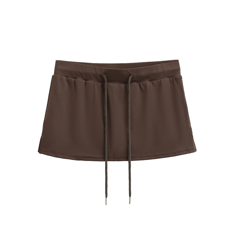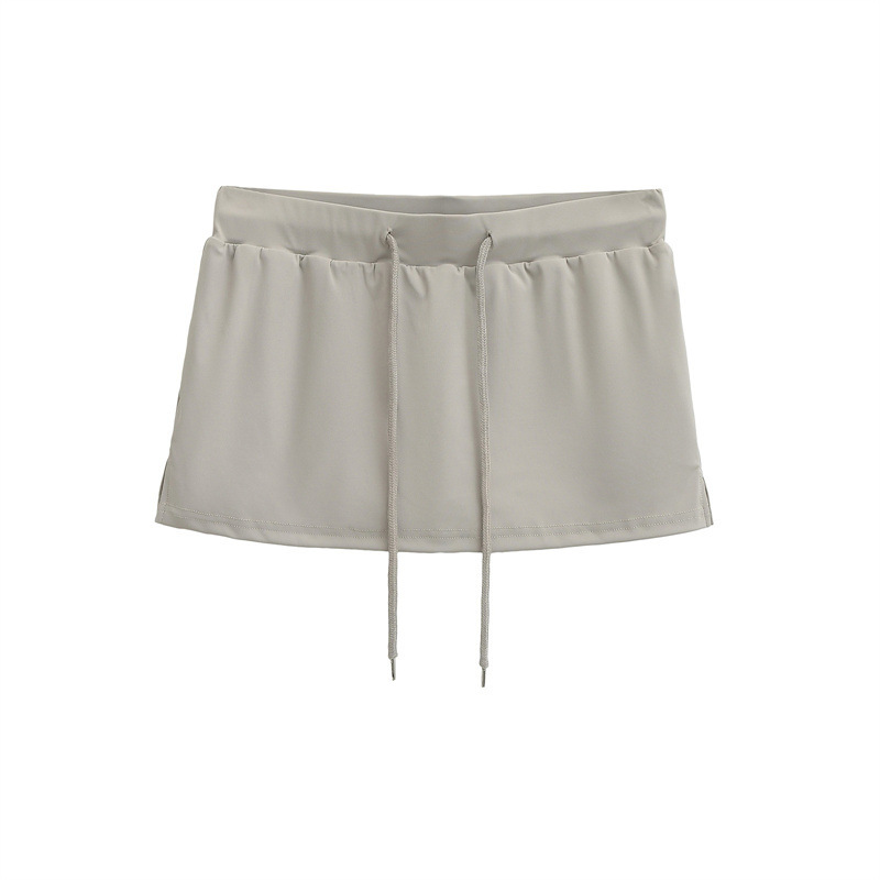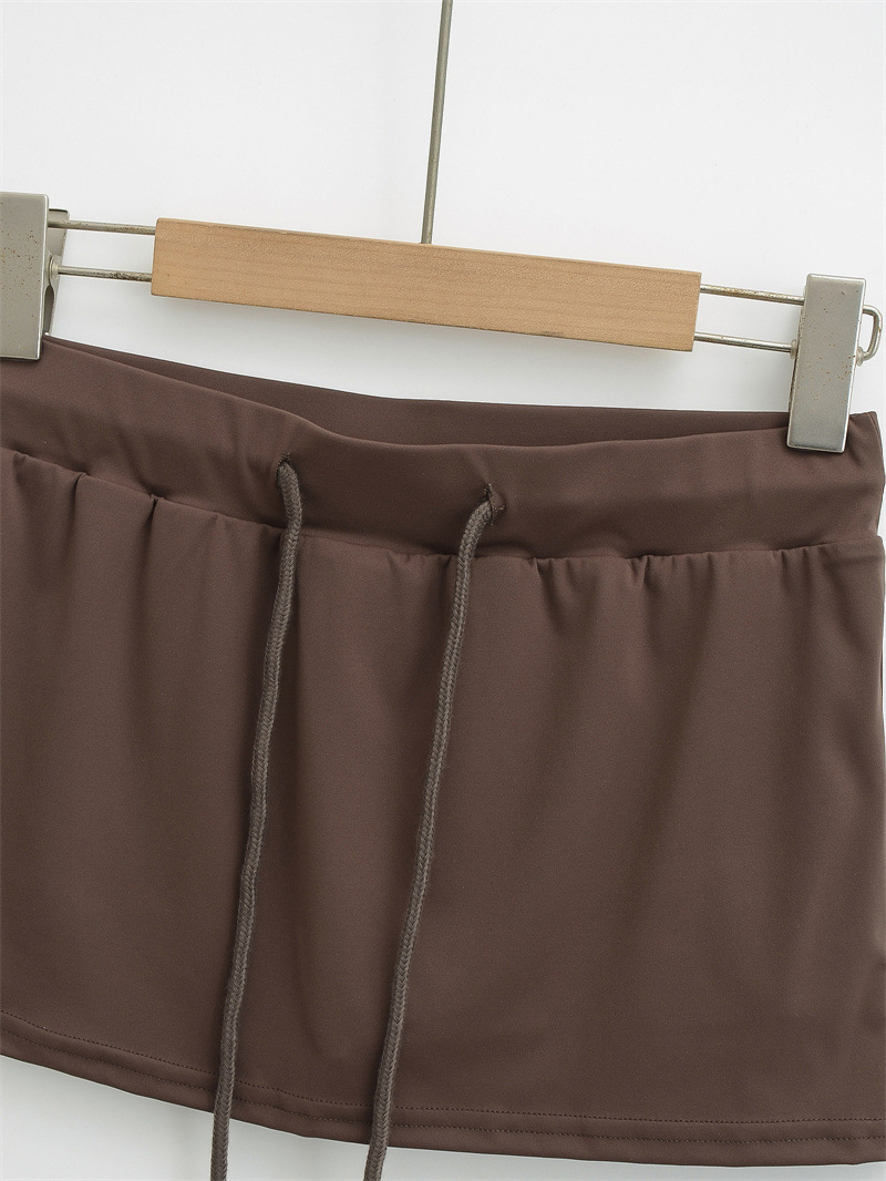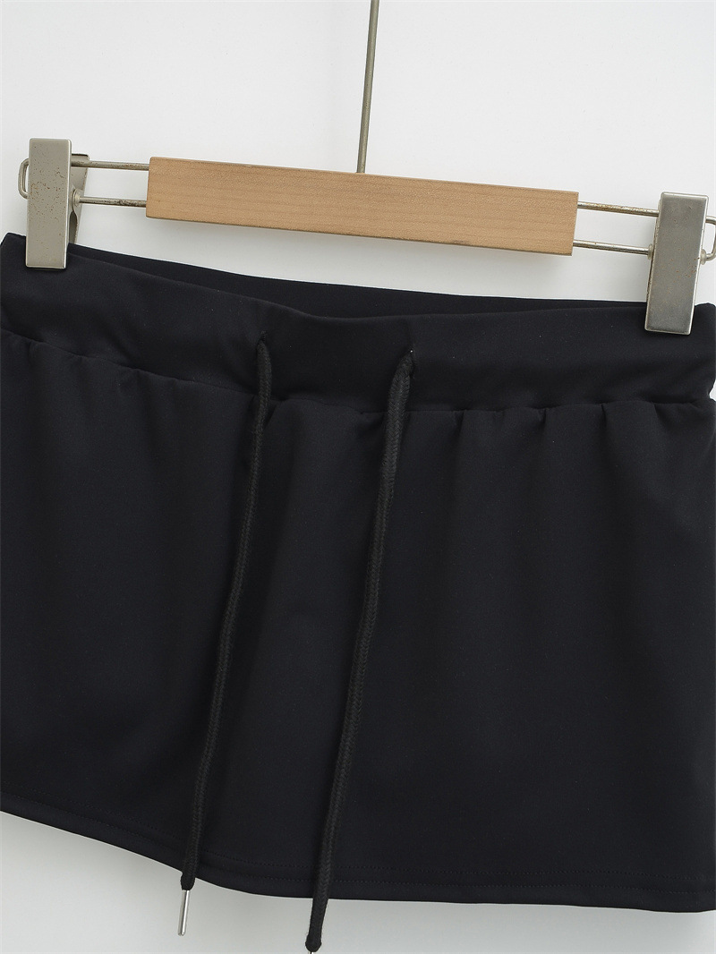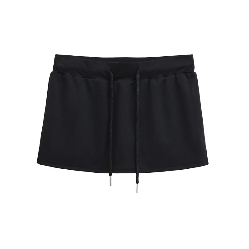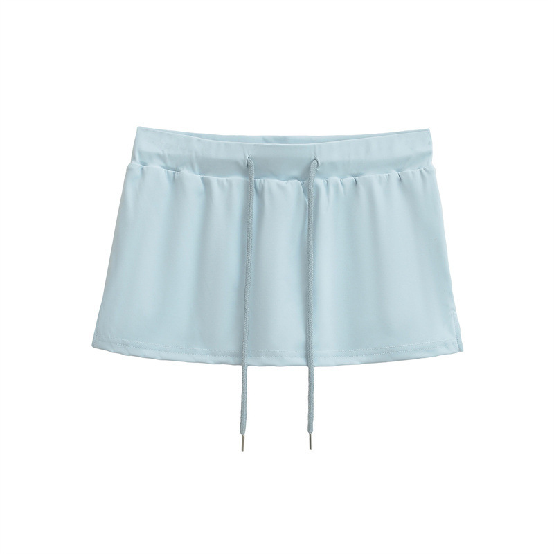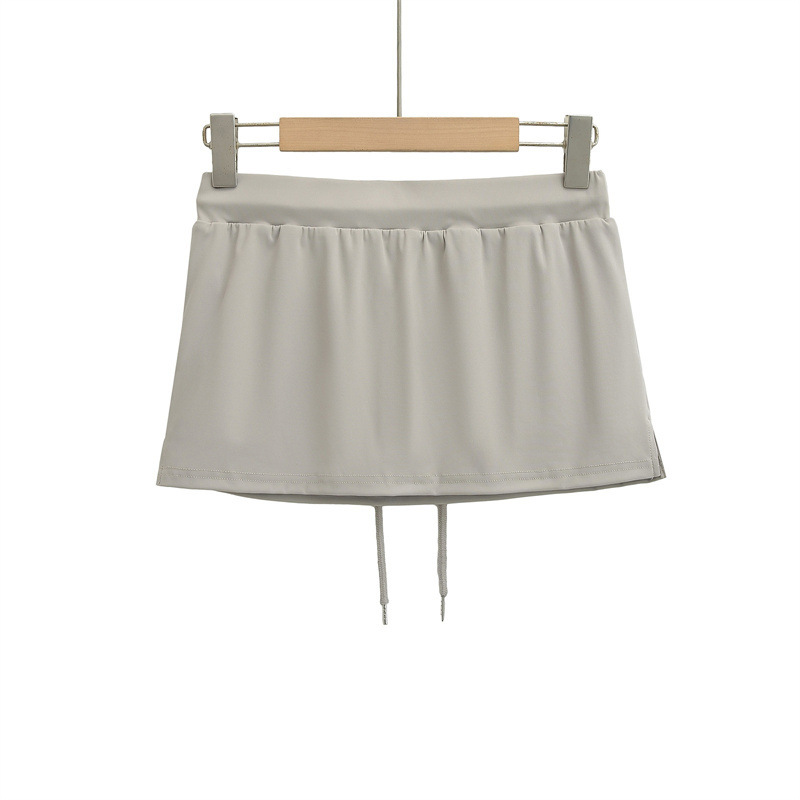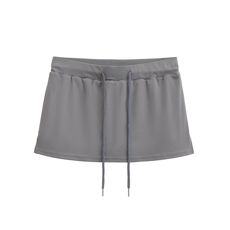 여성을위한 미국의 뜨거운 소녀 낮은 허리 드로우 스트링 스커트 2025 여름 꽉 섹시한 엉덩이 커버 노출 방지 짧은 스커트 미니 스커트