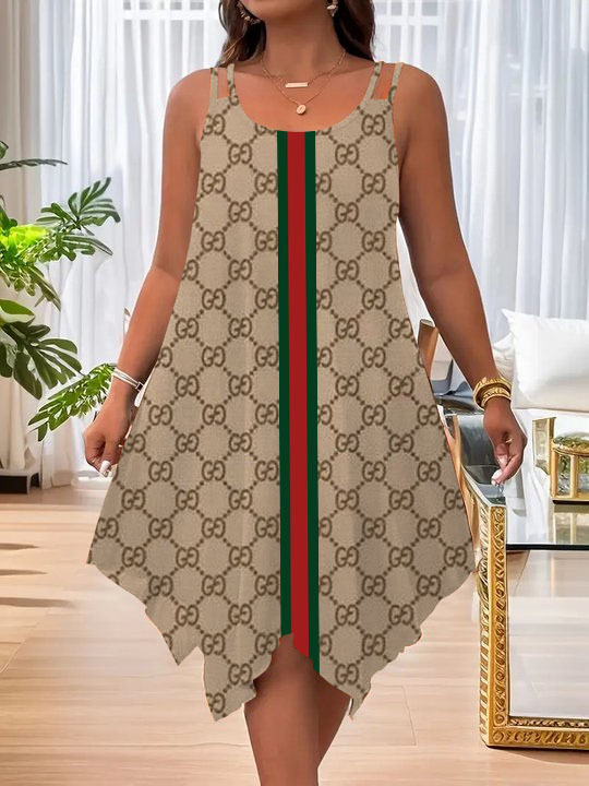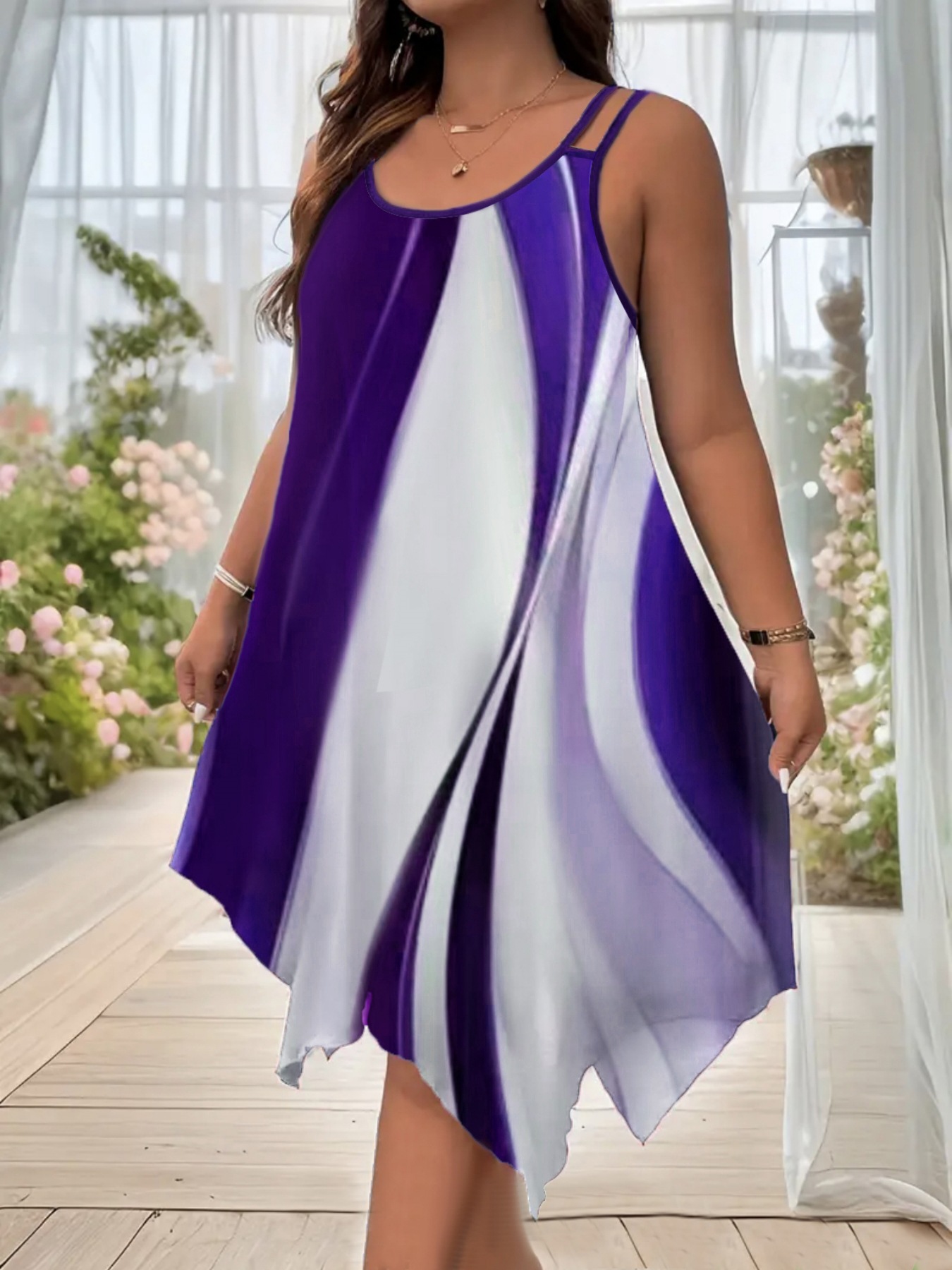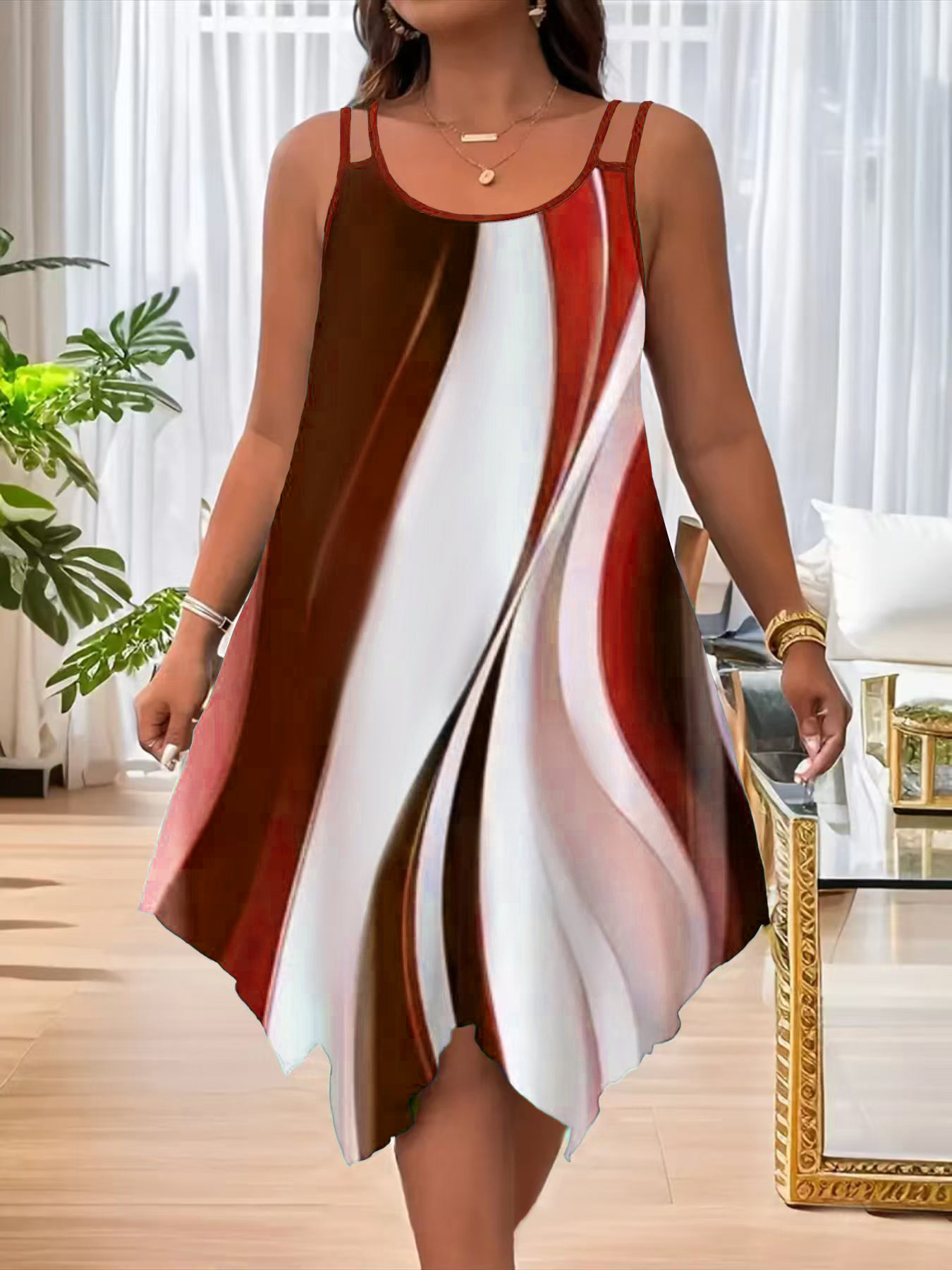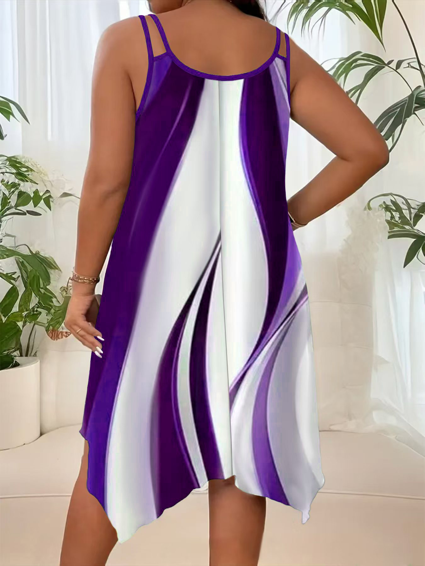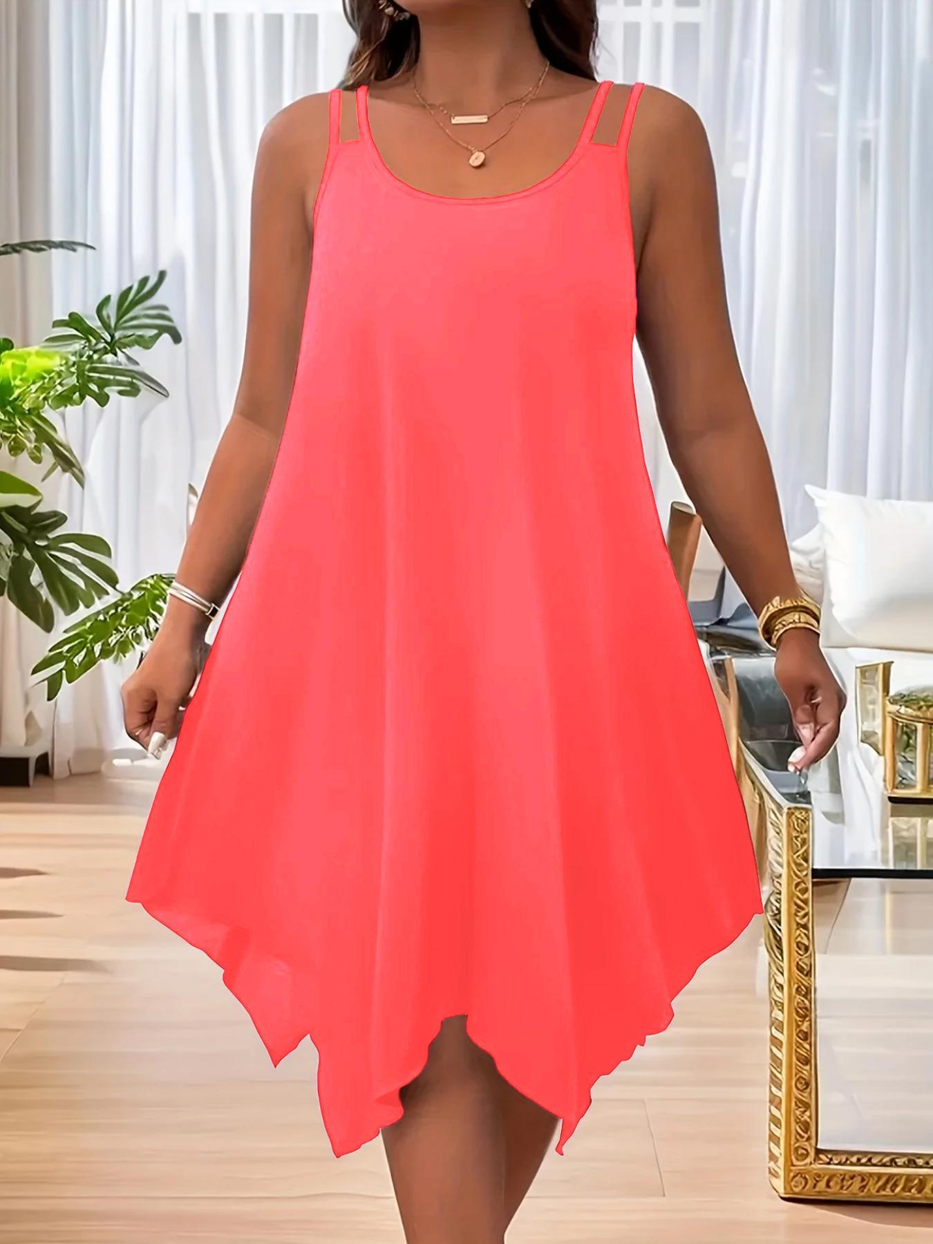 2025 유럽과 미국의 새로운 여성 의류 아마존 더블 숄더 스트랩 여름 캐주얼 비대칭 밑단 라운드 넥 드레스