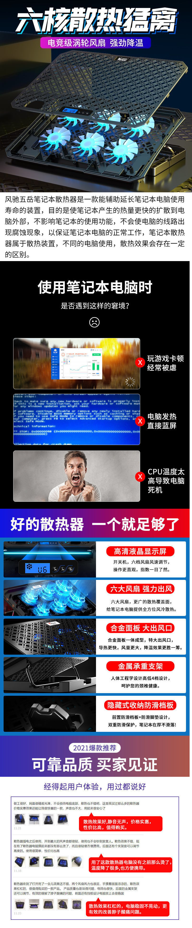 • 속도 조절이 가능한 팬 6개 [탈착식 휴대폰 홀더 포함]