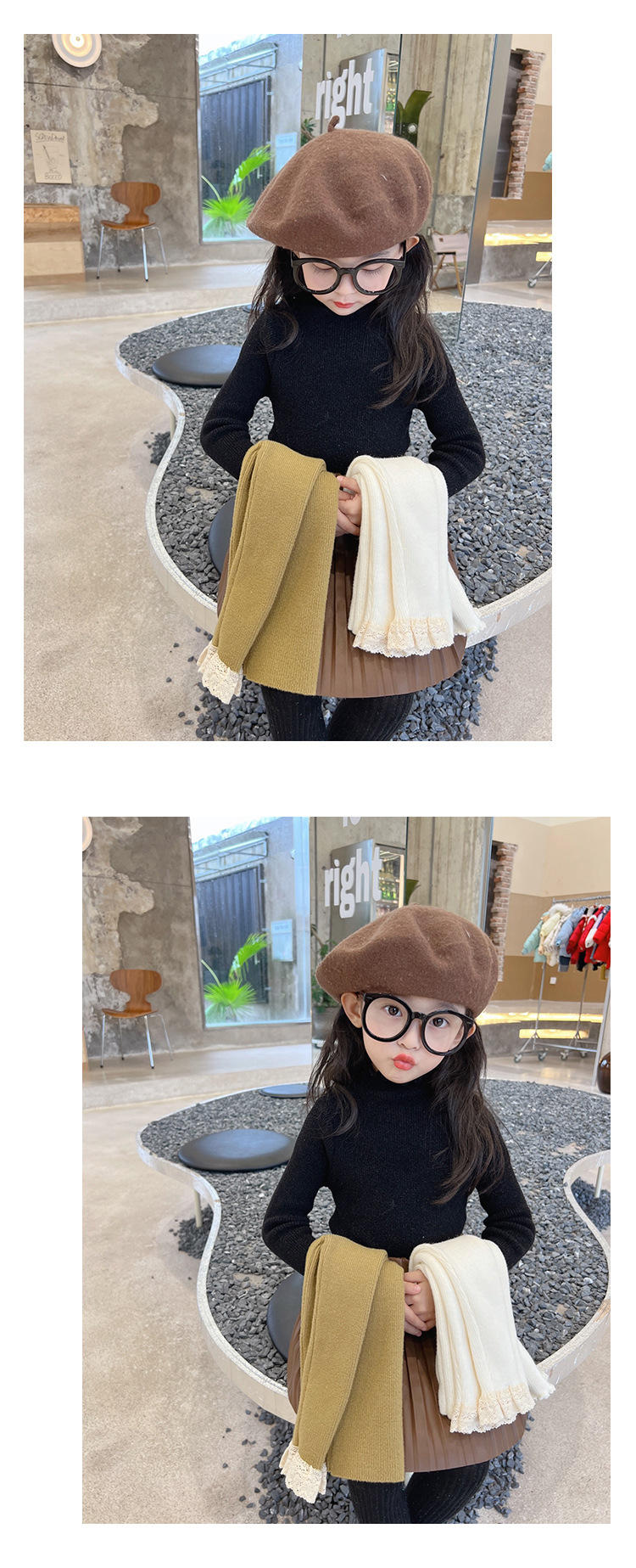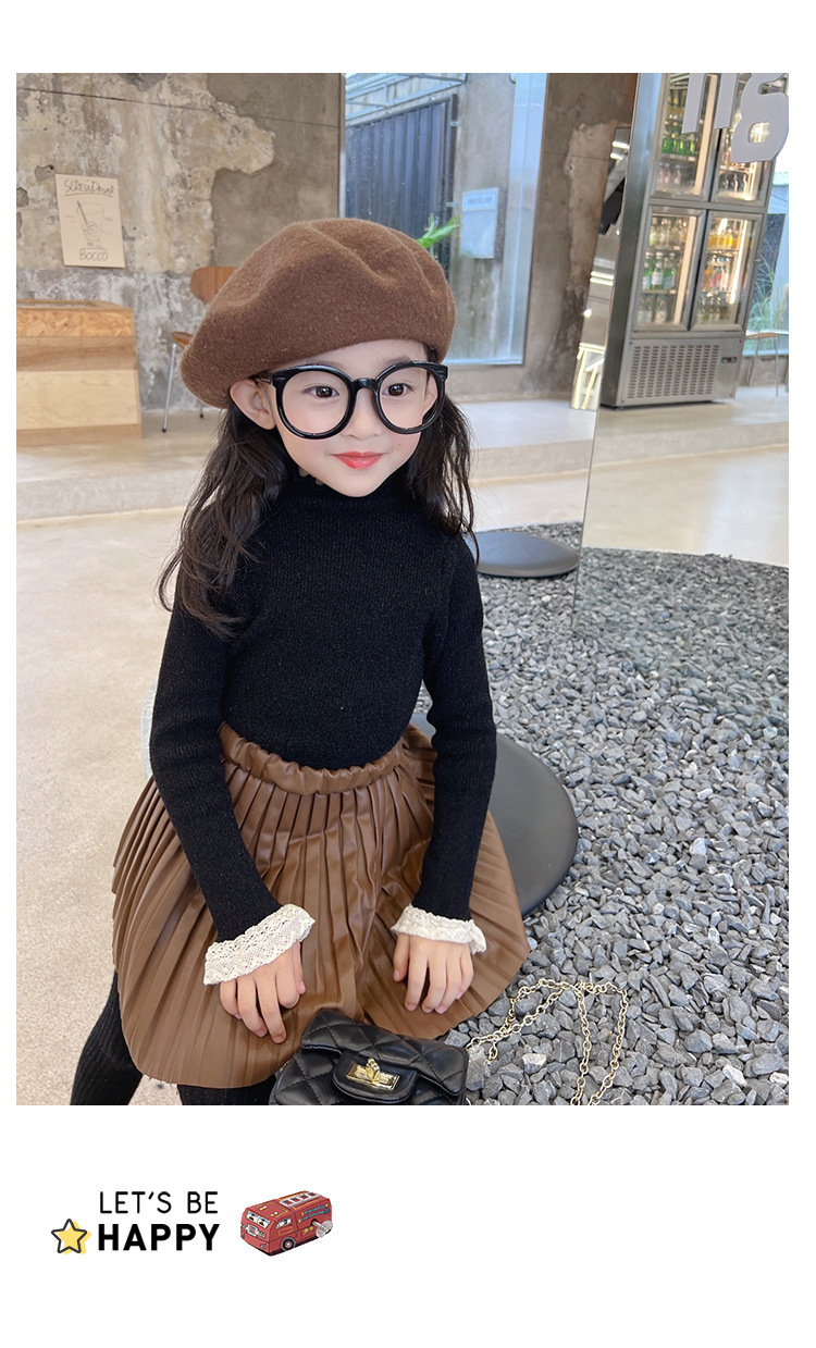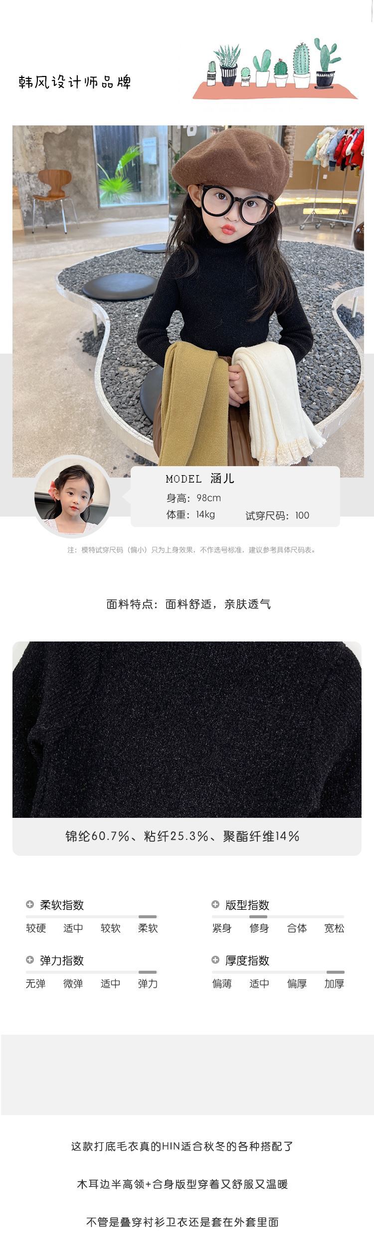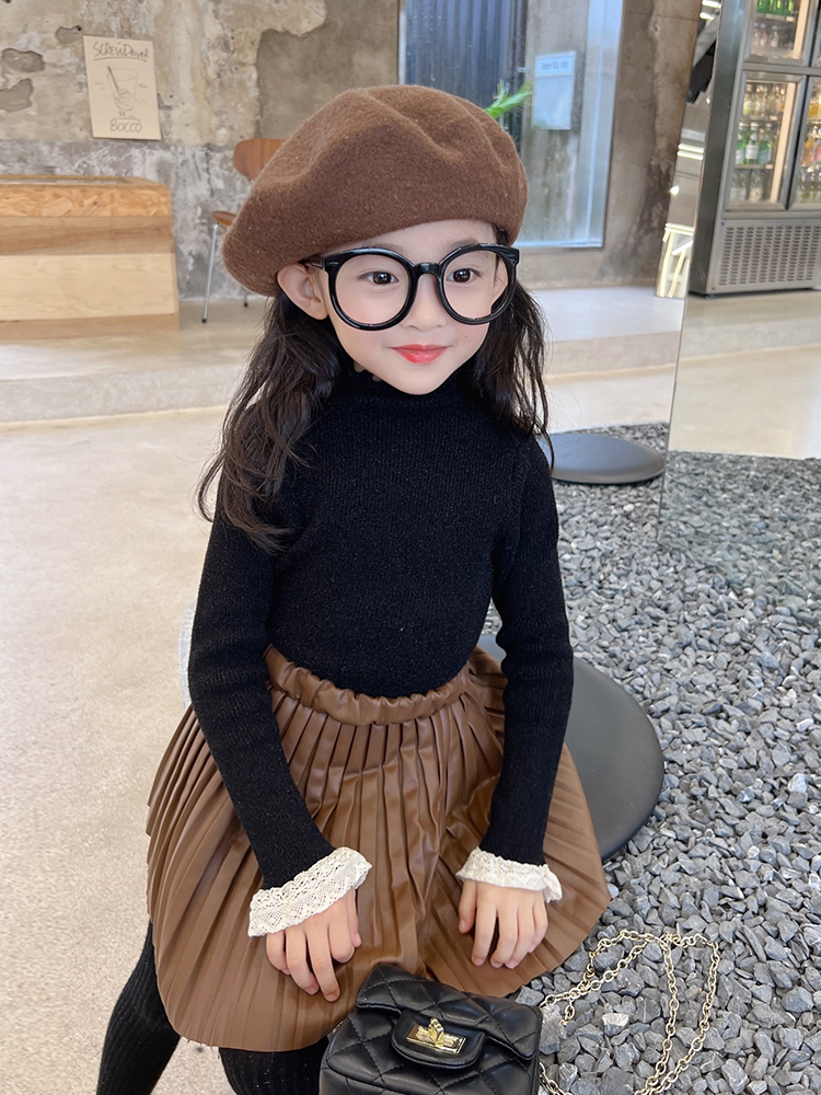 한국 걸스 슬림핏 스웨터 어린이 하이 칼라 베이스 셔츠 아기의 서양식 니트 셔츠 2025 겨울 뉴스토어 가기