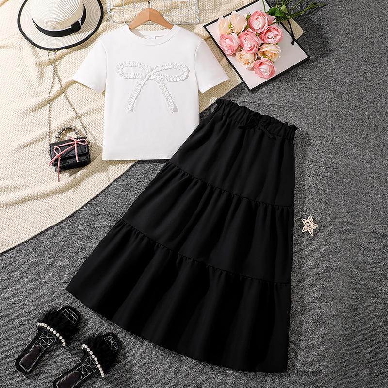 여아 정장 대외 무역 아동복 2025 여름 새로운 스타일 서양식 활 반팔 탑과 스커트 투피스 세트