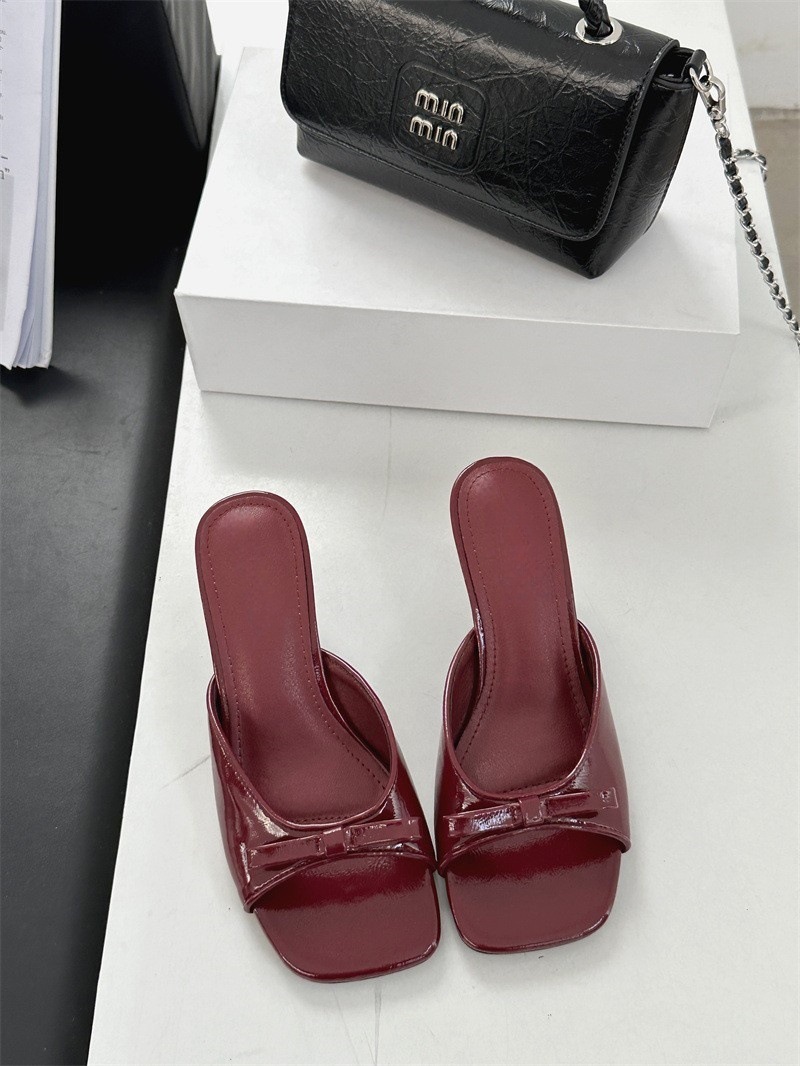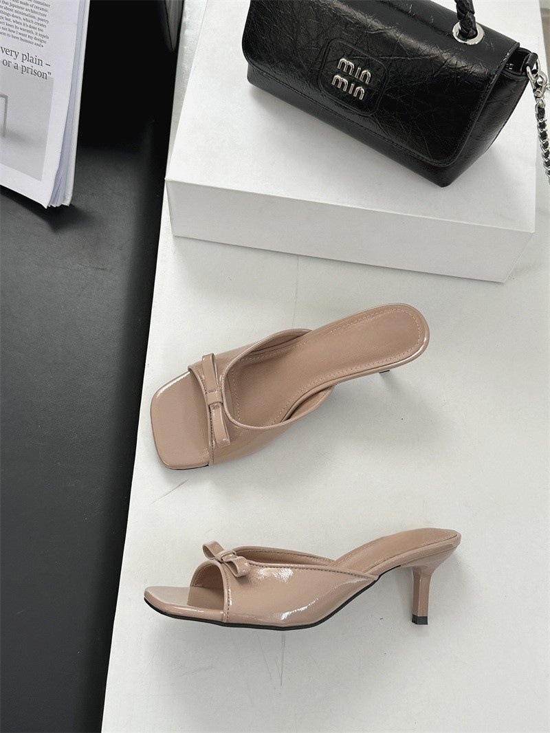 2025 봄과 여름 틈새 의상 활 하이힐 오픈-발가락 슬리퍼 여성용 프랑스 소형 샌들 뮬러 하프 슬리퍼스토어 가기