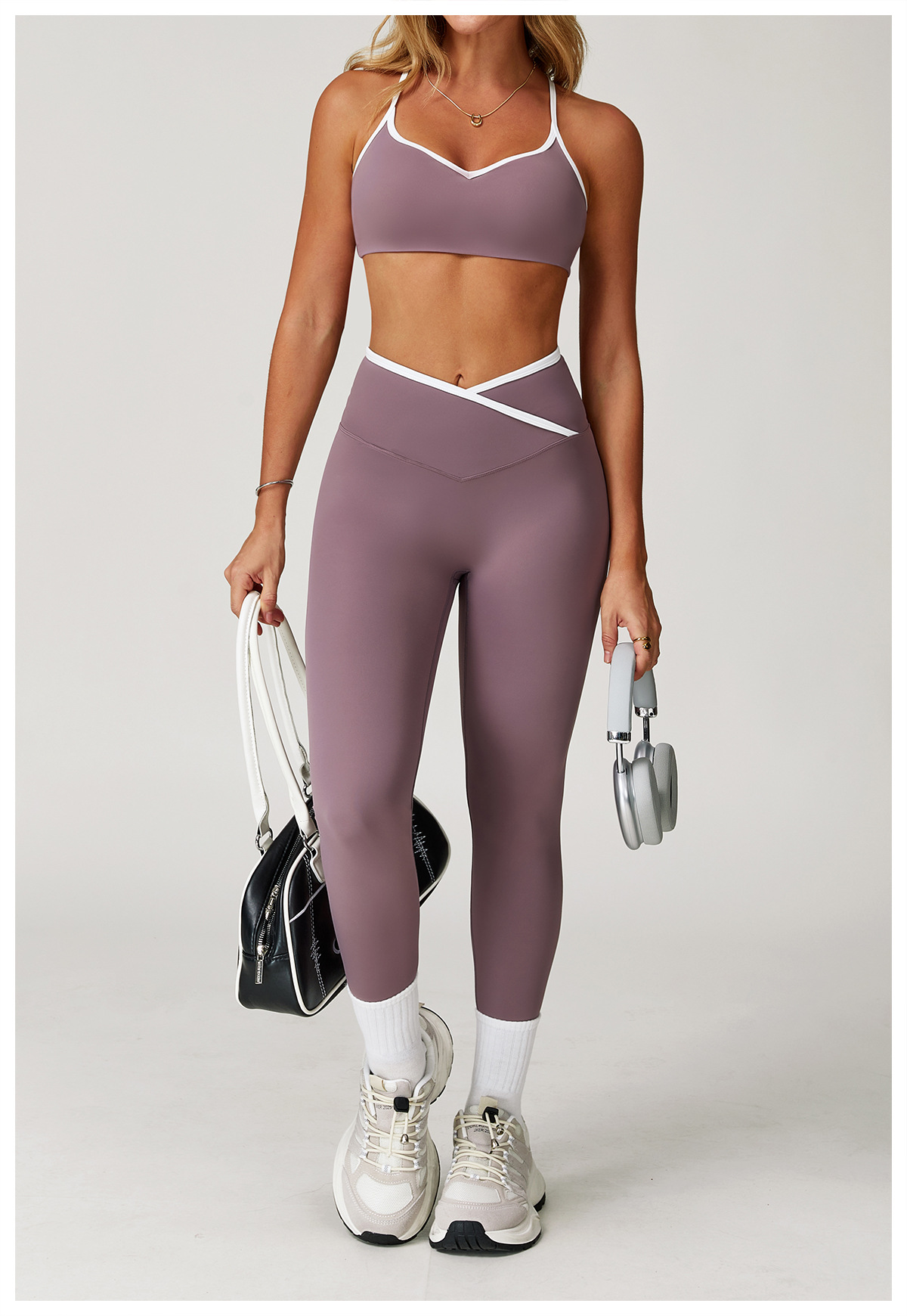 Zechuang 크로스 높은 허리 스포츠 세트 여성 색상 대비 타이트한 알몸 요가 세트 달리기 피트니스 요가 세트 9253
