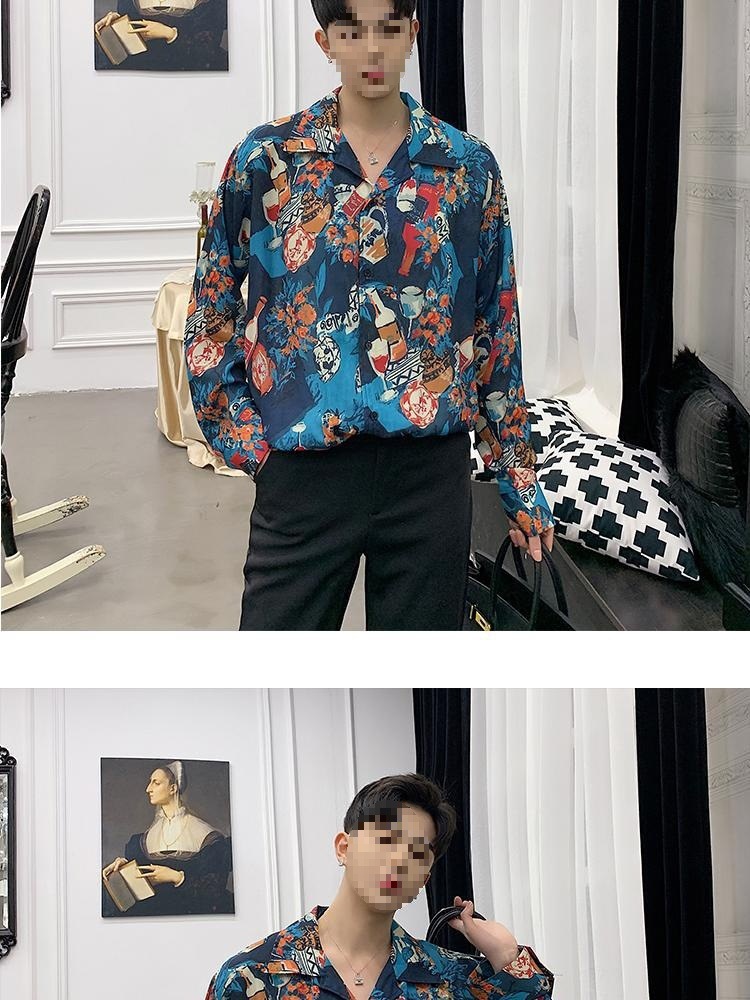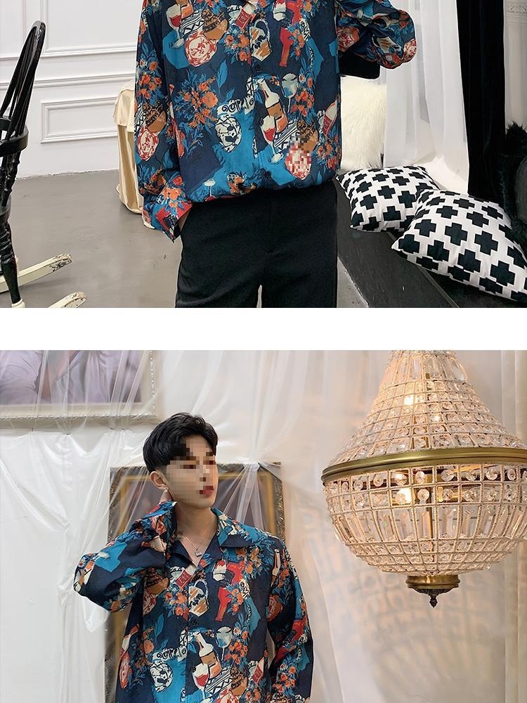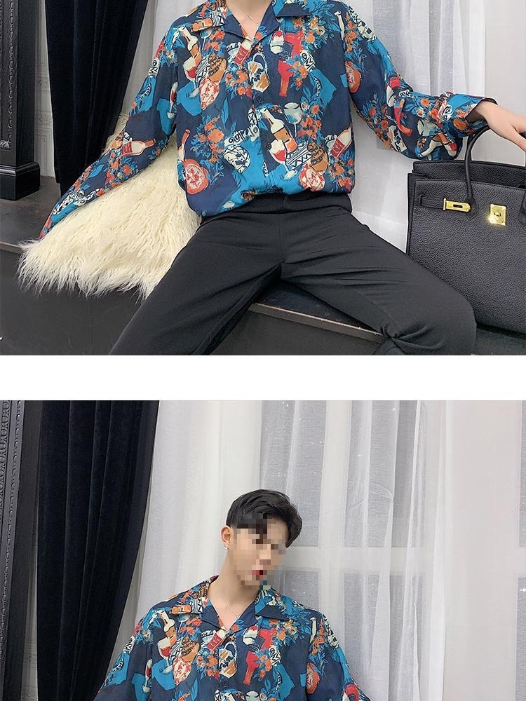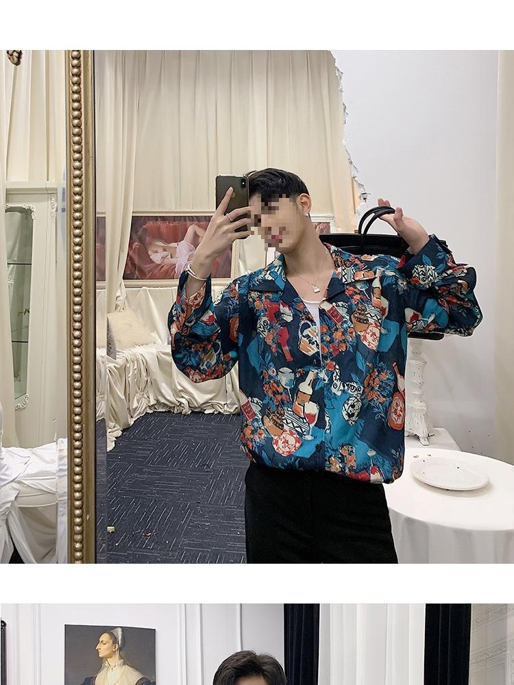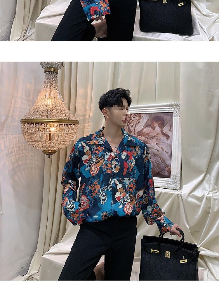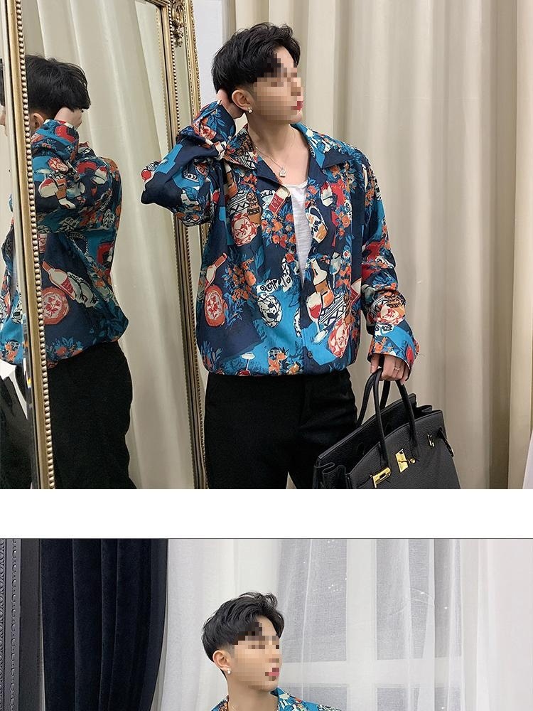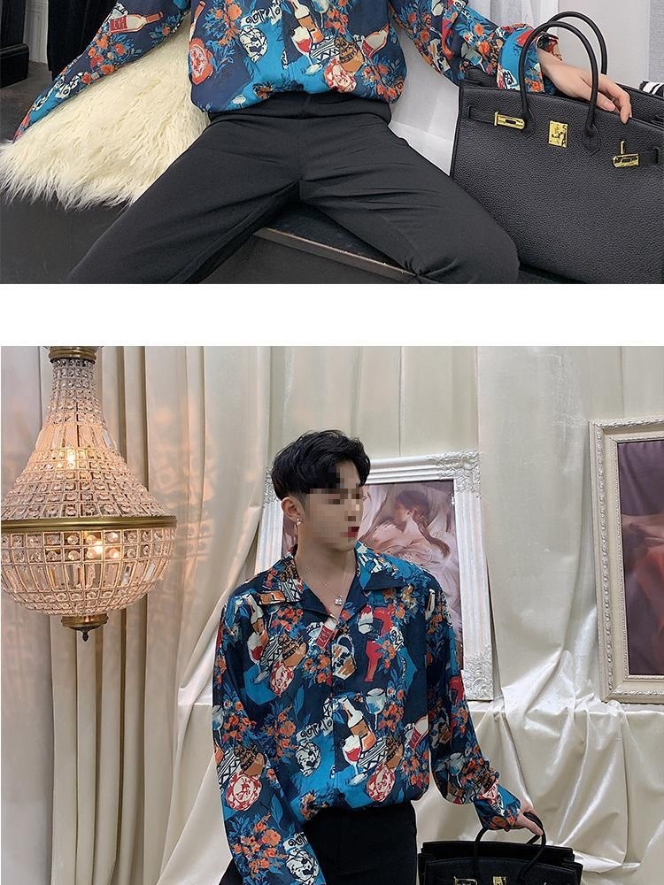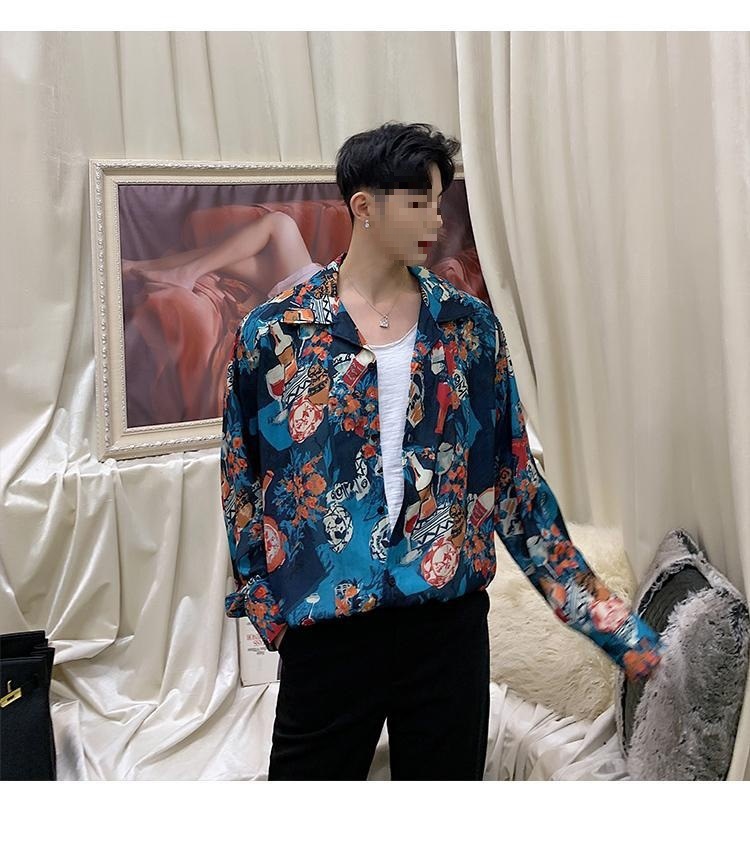 개성있는 꽃무늬 셔츠, 남성용 긴팔 셔츠, 트렌디한 와이드 셔츠, 한국식 복고풍 프린트 루즈 셔츠, 트렌디한 재킷스토어 가기