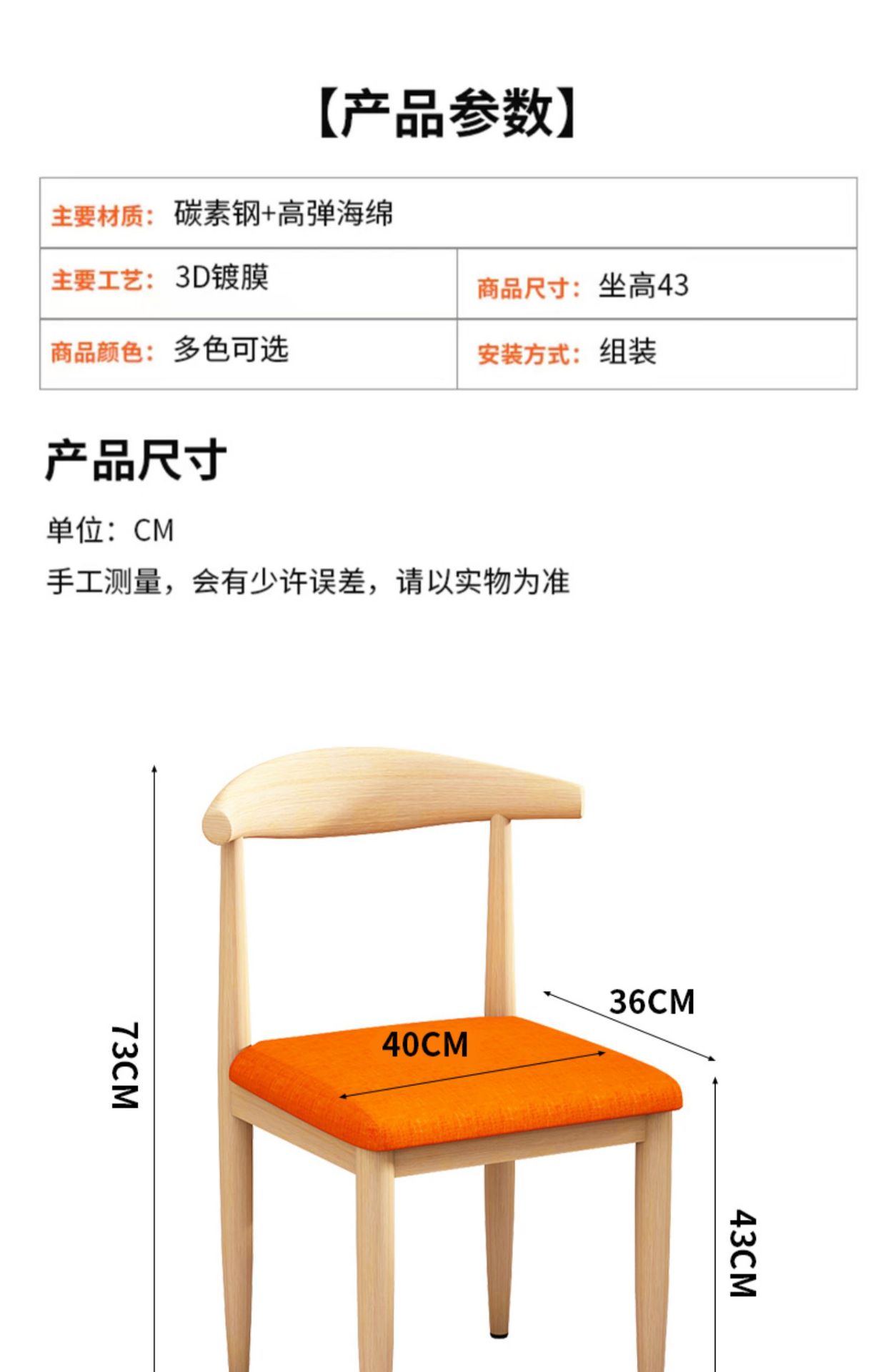 식당 의자 등받이 북유럽 간단한 연구 의자 책상 학생 학습 침실 홈 모조 단단한 나무 철 뿔 의자