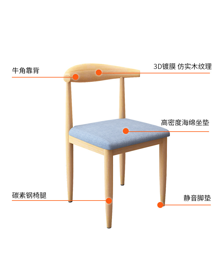 식당 의자 등받이 북유럽 간단한 연구 의자 책상 학생 학습 침실 홈 모조 단단한 나무 철 뿔 의자스토어 가기