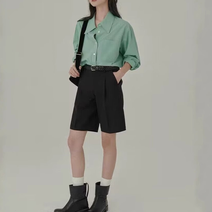 时髦精标配!遮肉又气质基础百搭宽松休闲西装短裤