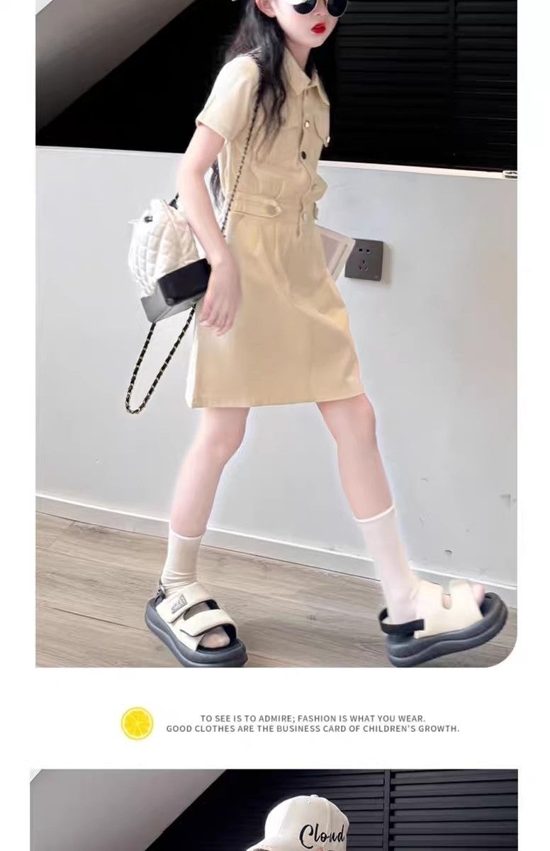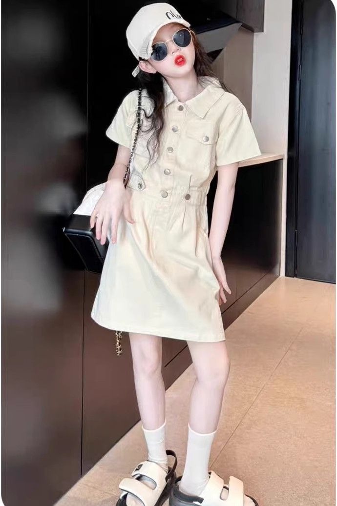 여자 드레스 여름 2025 새로운 스타일 어린이 여름 드레스 대학 스타일 반팔 큰 어린이 인터넷 연예인 작업복 스커트스토어 가기