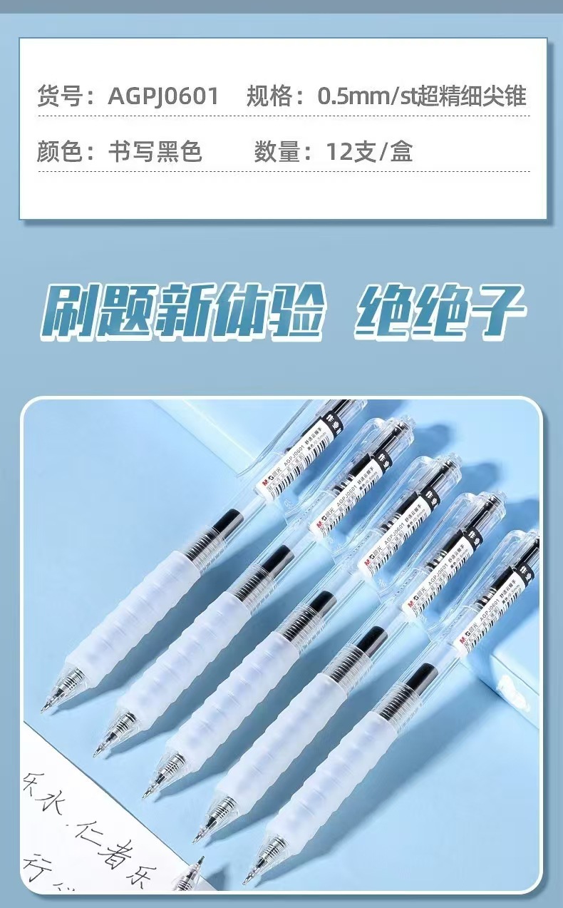아침 숙제 ST 펜 포인트 프레스 젤 펜 AGPJ0601 구름 악수 검은 펜 빠른 건조 부드러운 브러시 펜 학생스토어 가기