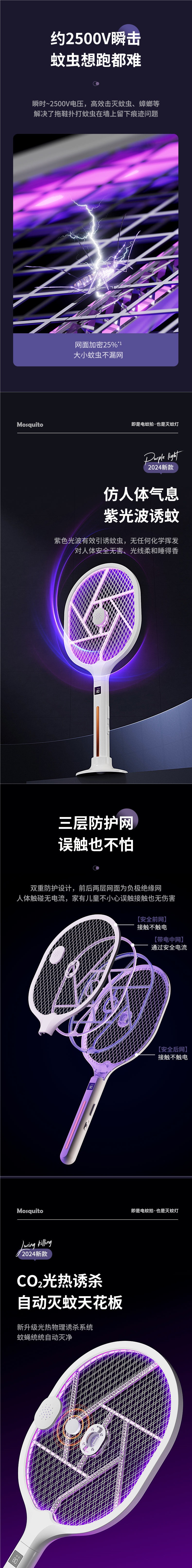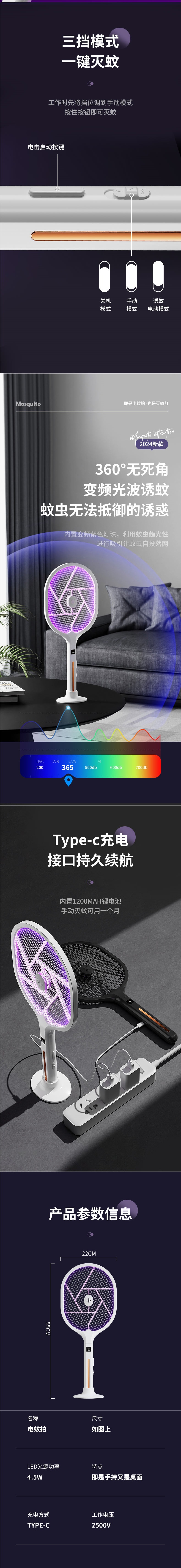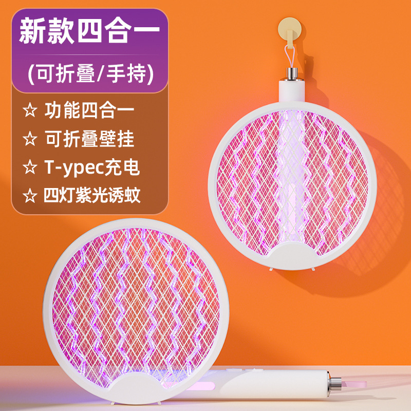 • 업그레이드된 접이식 쓰리인원 자동 모기덫 [보라색 빛 모기덫 4개 + 리튬 배터리 + Type-C 고속 충전 + 접이식/휴대용/벽걸이형]