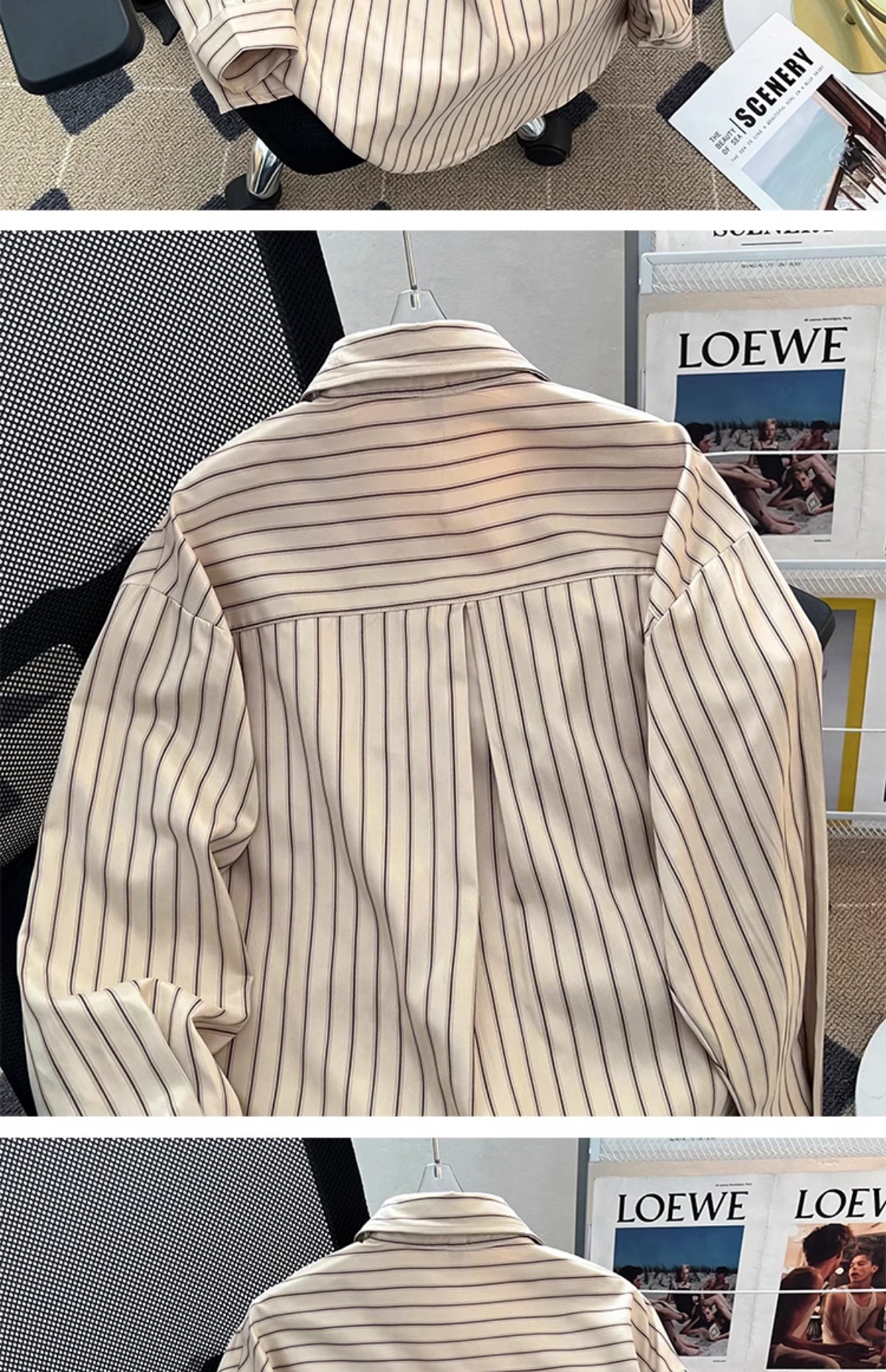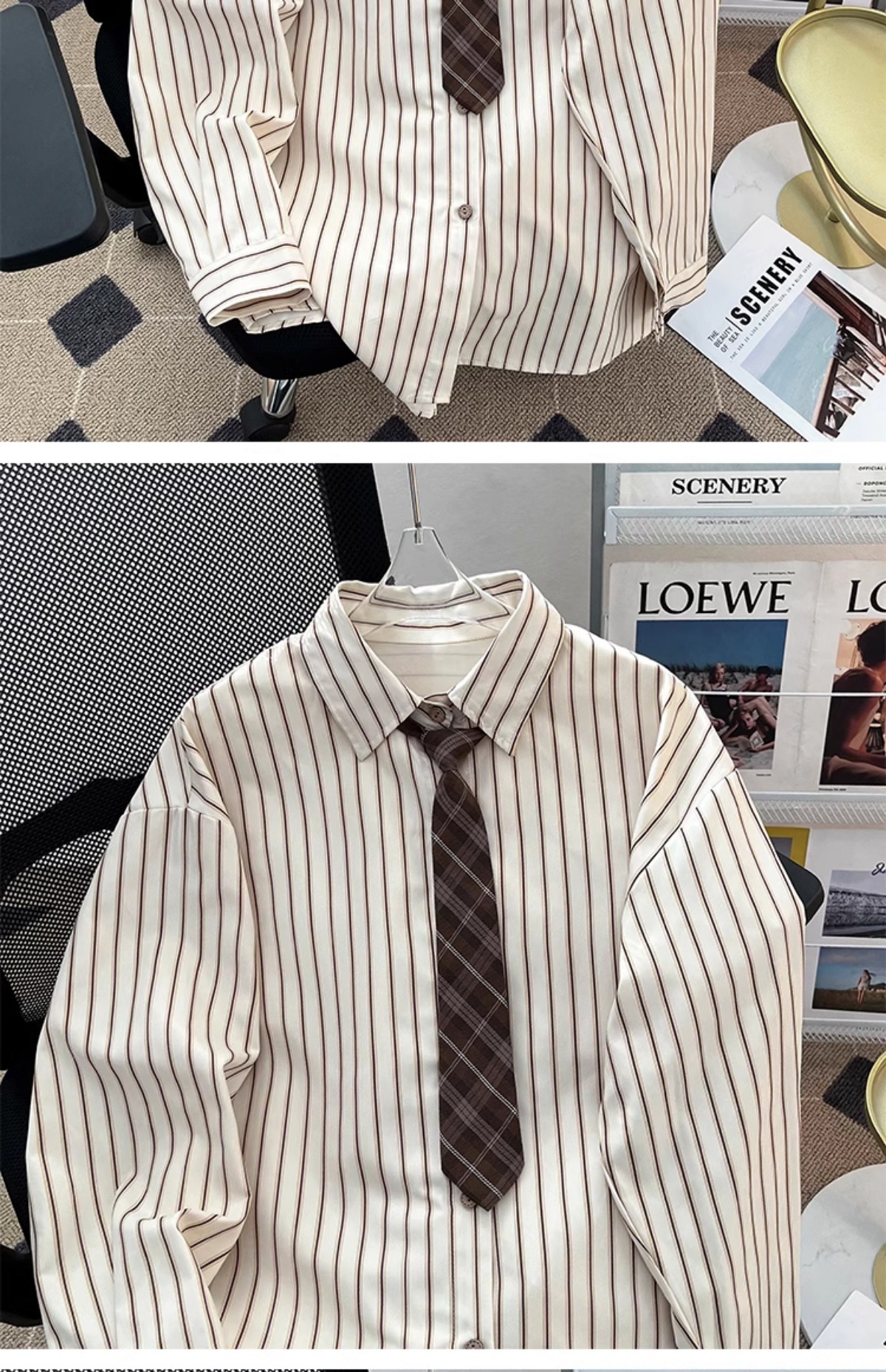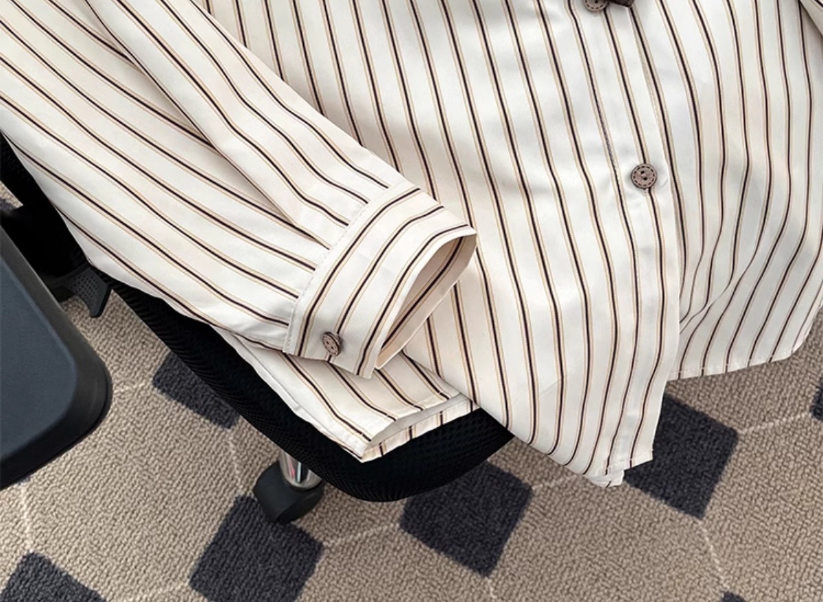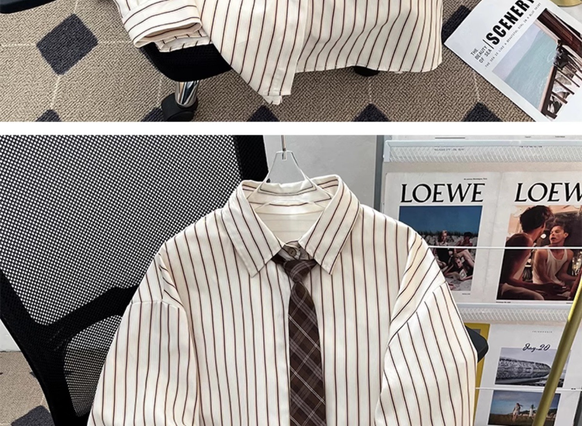 일본 기본 스트라이프 긴팔 셔츠 남성용 틈새 고급 한국식 루즈한 대학 스타일 레이어드 이너 셔츠스토어 가기