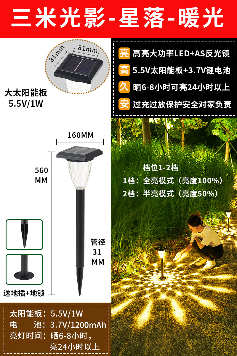 • 빛과 그림자 잔디등-별이 떨어지는 따뜻한 빛 (1팩)