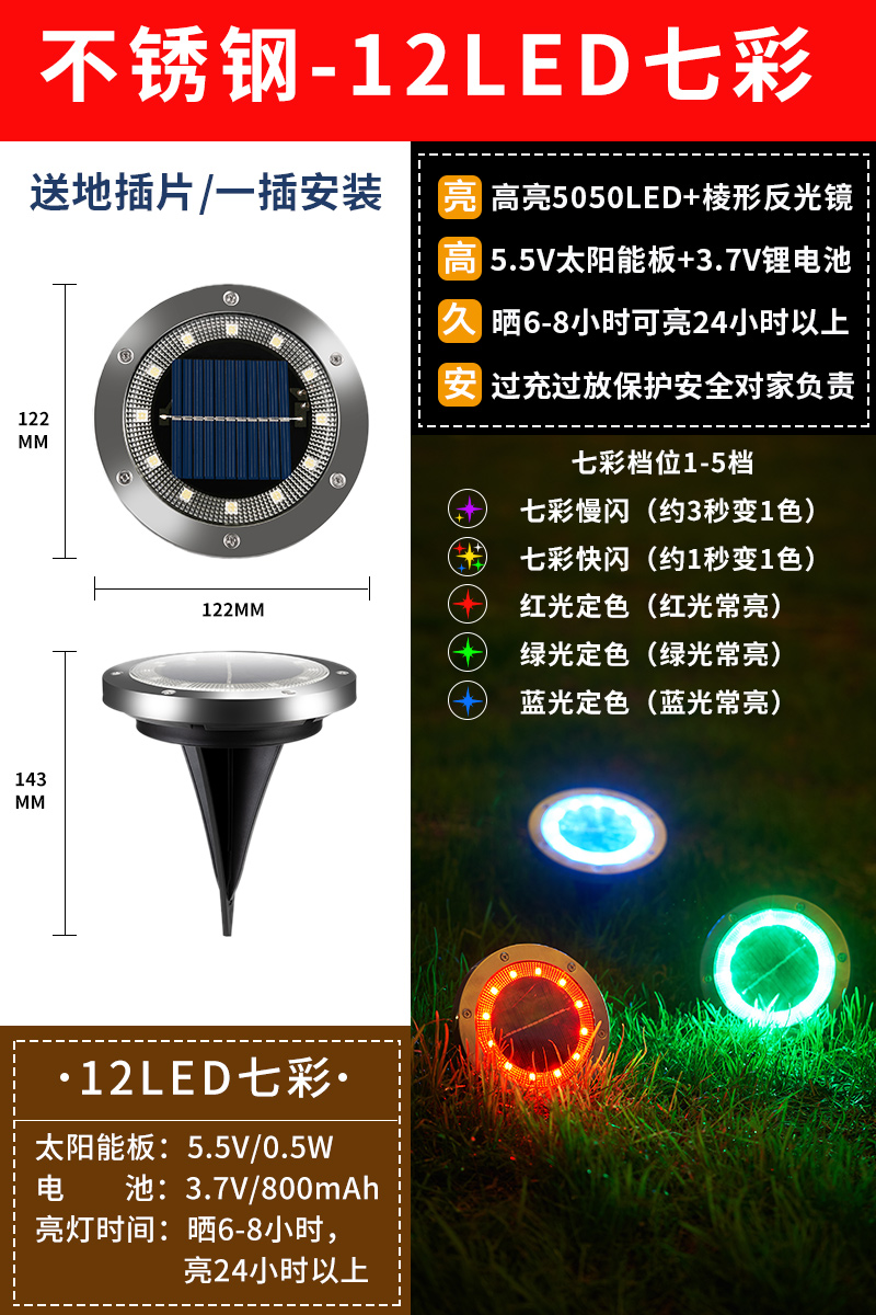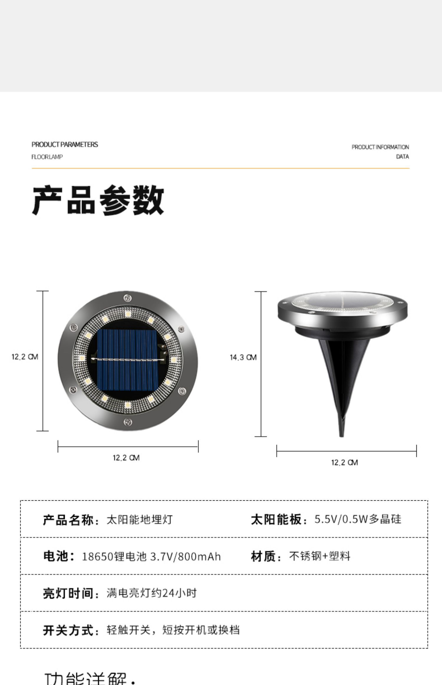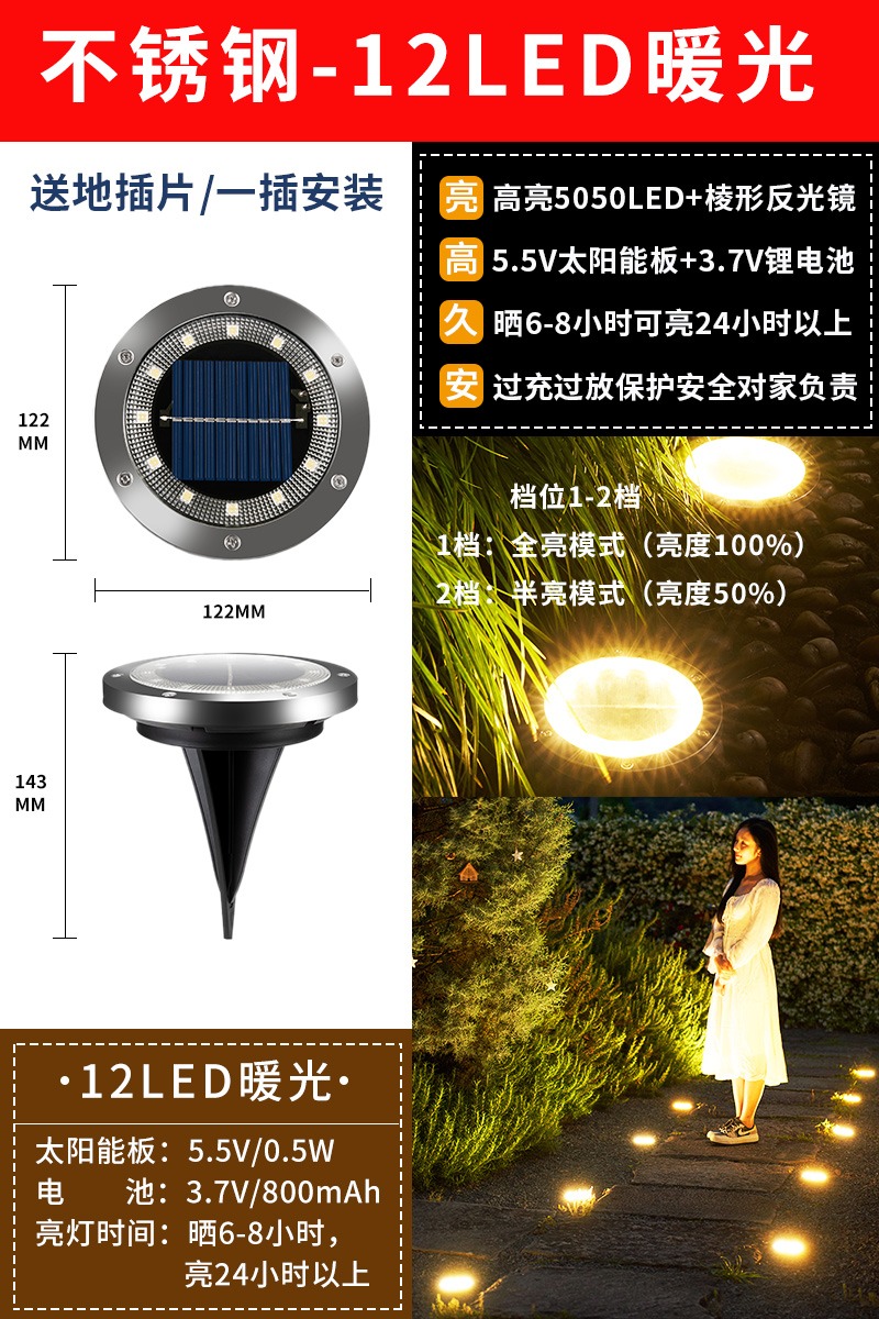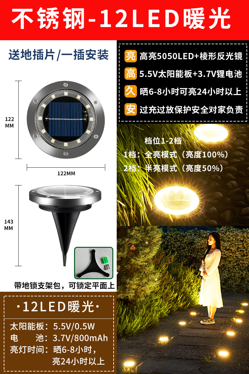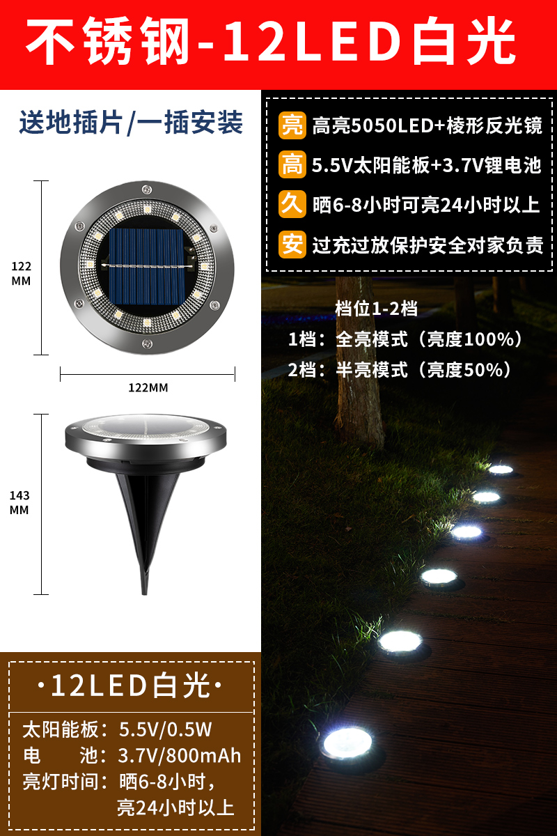 태양 광 매장 램프 스테인레스 스틸 야외 안뜰 정원 잔디 풍경 작은 안뜰 바닥 램프 방수 사다리 발