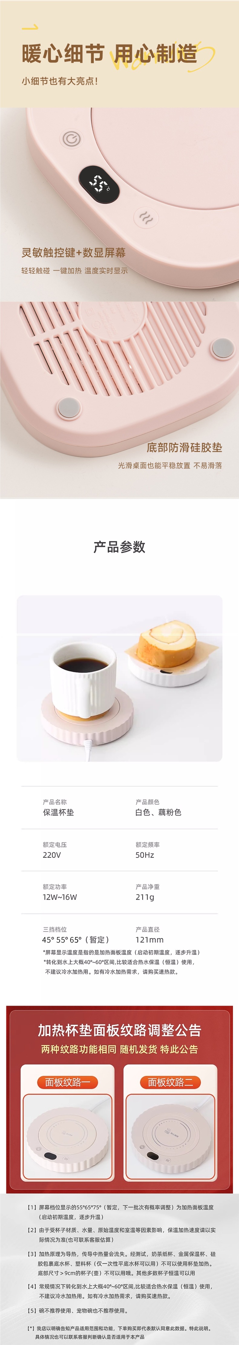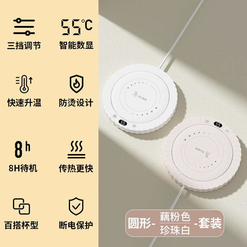 • 라운드핑크/화이트 세트 [스마트 디지털 디스플레이★3단계 온도 조절★8시간 후 자동 종료★컵 모양을 선택하지 마세요★화상 방지 디자인★1.3M 연장 코드]