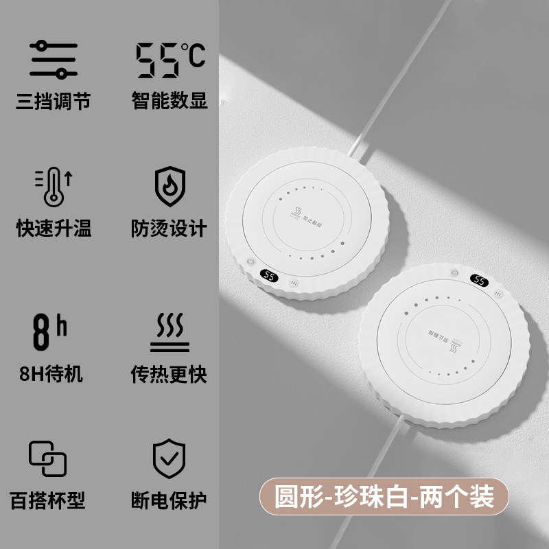 • 라운드 - 펄 화이트 2팩 [지능형 디지털 디스플레이]★3단계 온도 조절★8시간 후 자동 종료★컵 모양을 선택하지 마세요★화상 방지 디자인★1.3M 연장 코드].